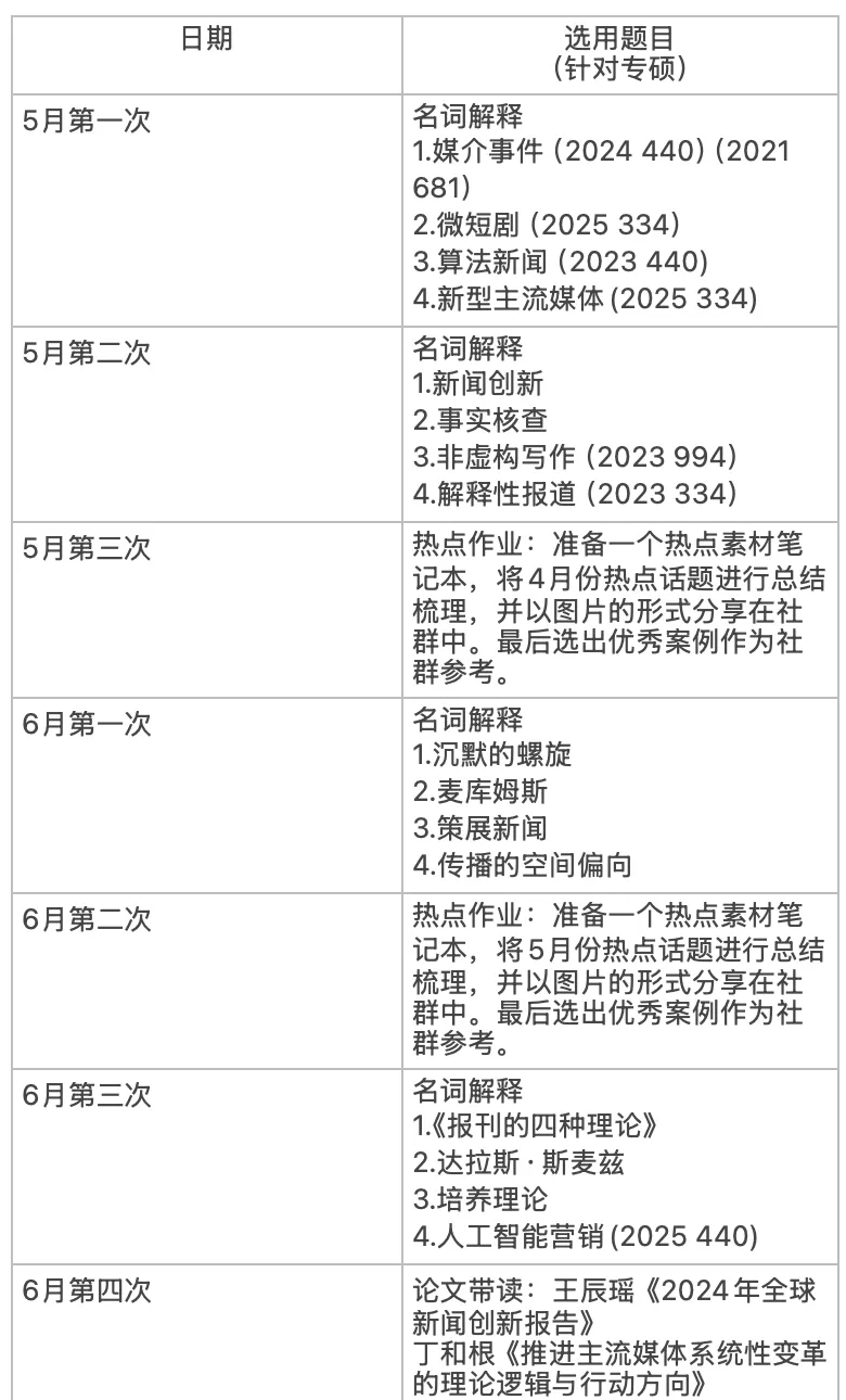 根据院校实际情况安排素材积累/论文带读课/复盘课/押题课等内容