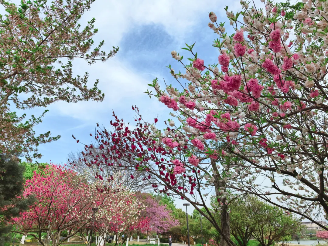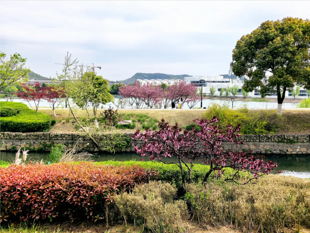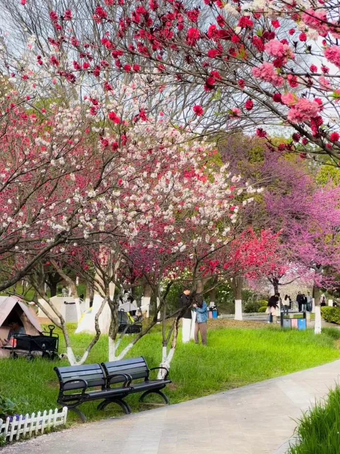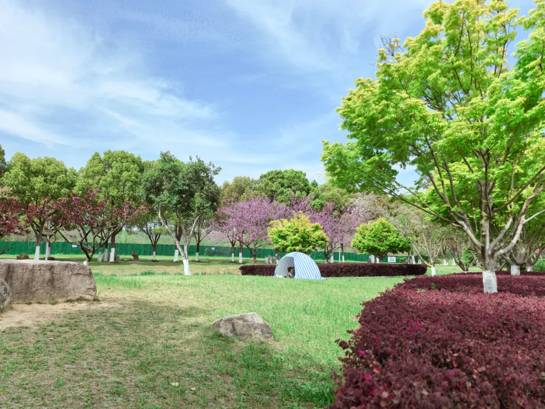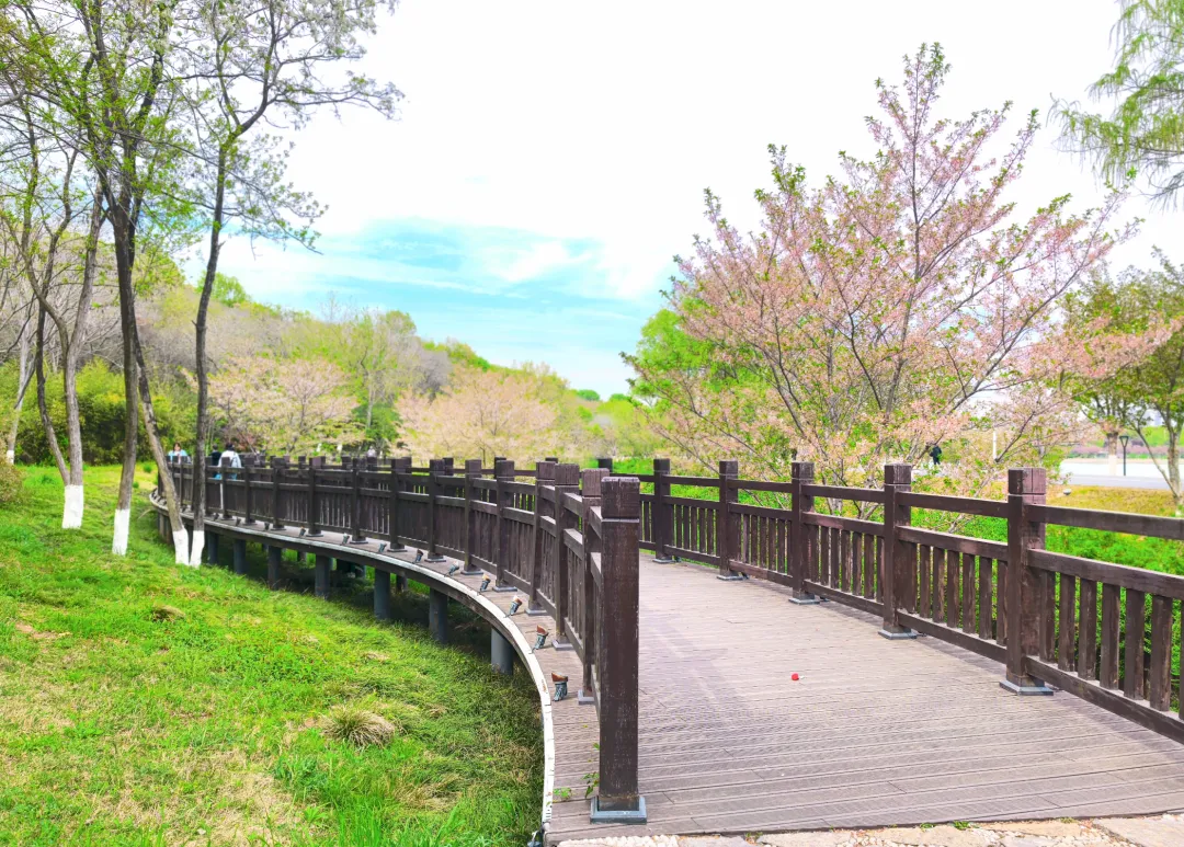 羊山公园的花景最让人惊喜,它围绕 “一山、一水、一谷、一涧、一堤、一坪” 的定位,打造了樱花涧、海棠堤、溪谷花镜等特色景观。
