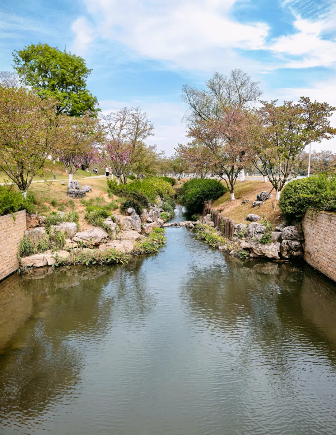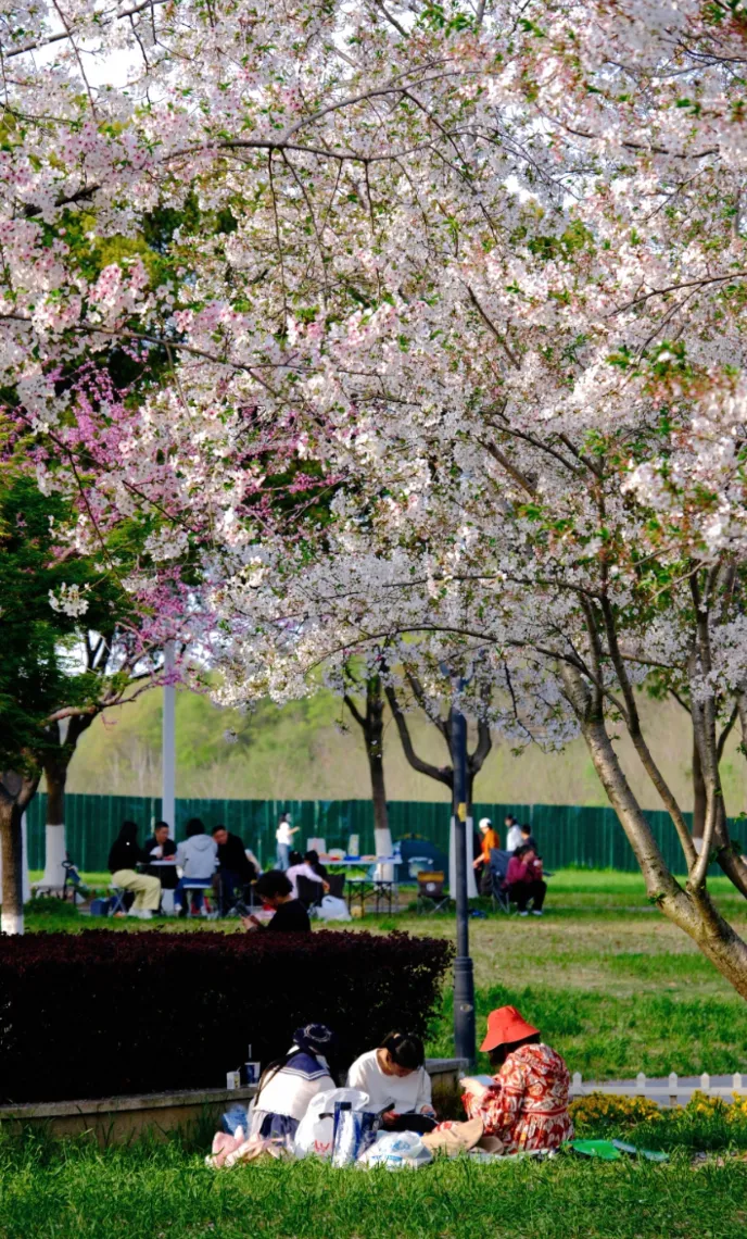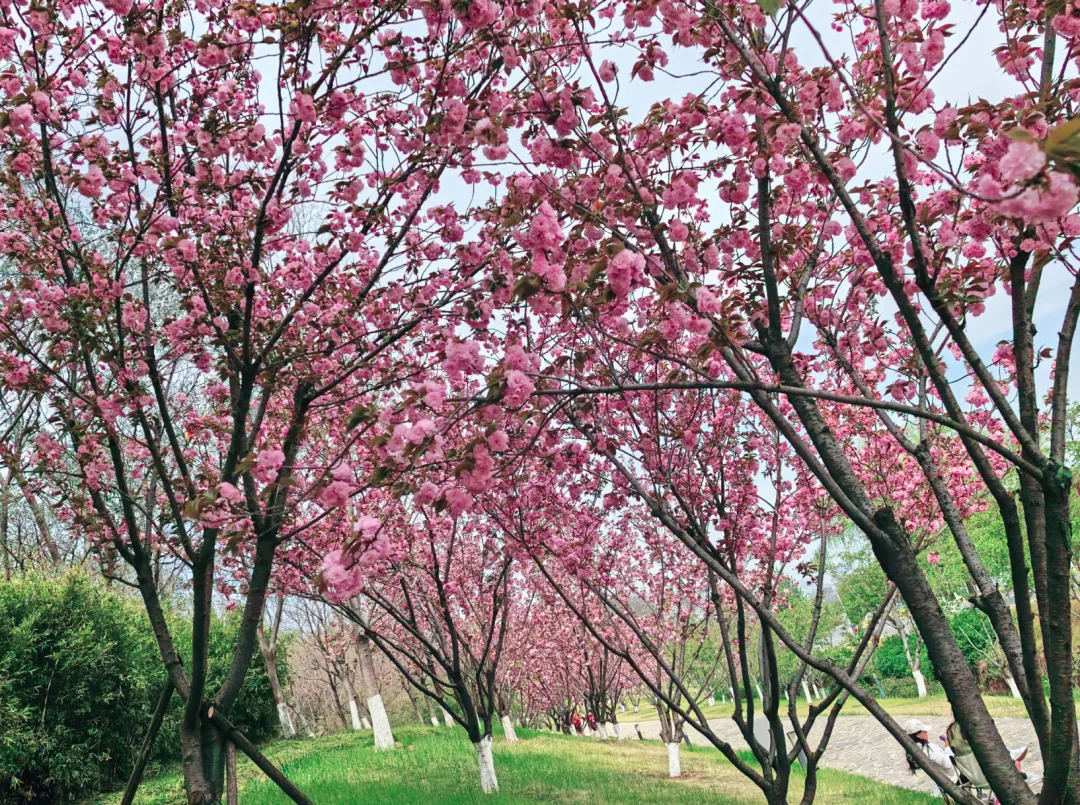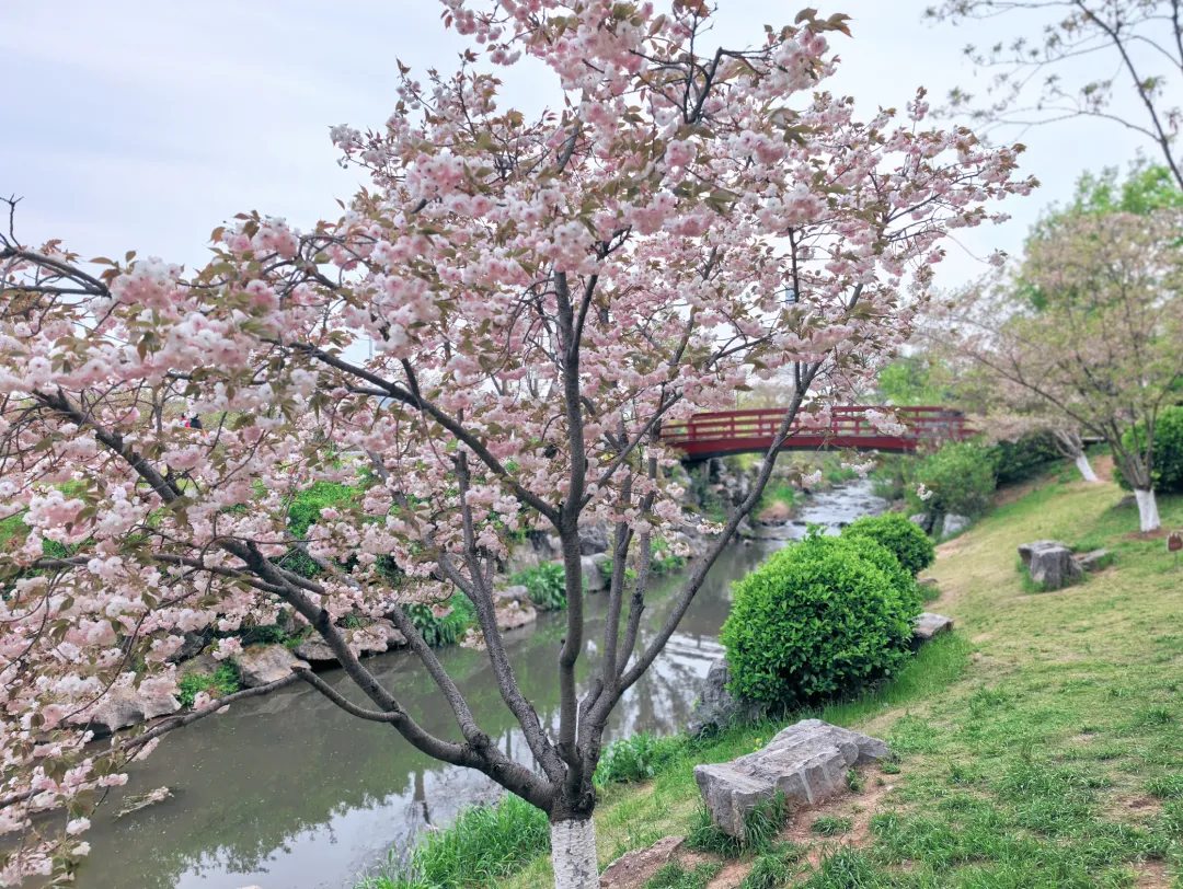 羊山公园的花景最让人惊喜,它围绕 “一山、一水、一谷、一涧、一堤、一坪” 的定位,打造了樱花涧、海棠堤、溪谷花镜等特色景观。