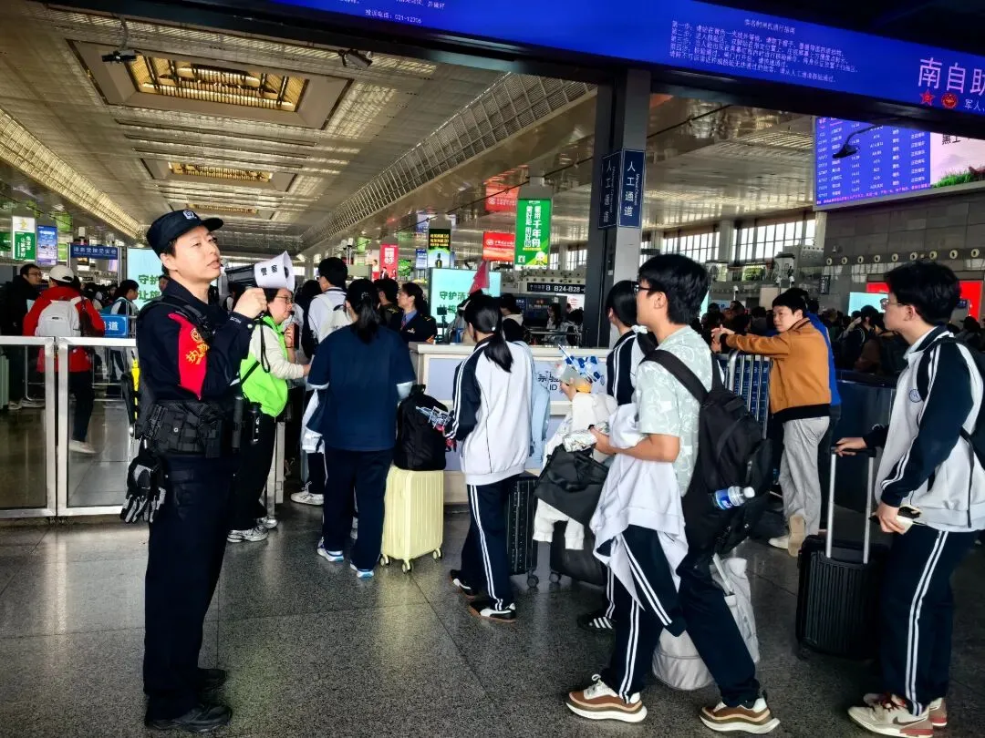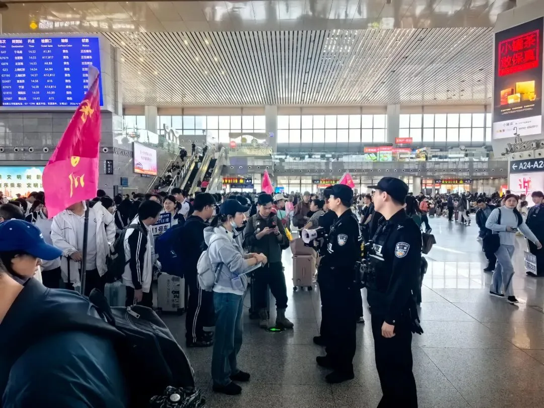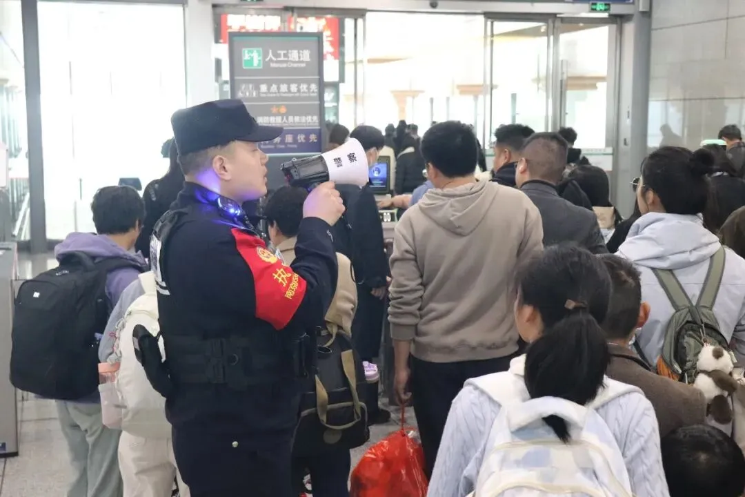 聚焦旅客出行“急难愁盼”,派出所联合“158”雷锋服务站设置“枫桥经验”实践岗,民警与服务站工作人员协同联动,现场为旅客解答车次查询、路线指引、警务咨询等各类出行咨询,日均服务旅客超2000余人次。