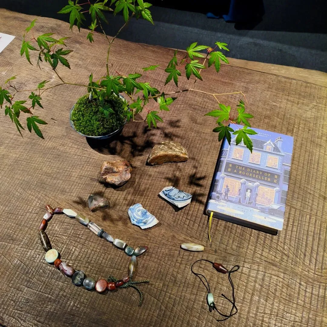 案头绿植是宁宁为石展搭配的盆栽,甫一摆上,空间里顿觉生机无限。
