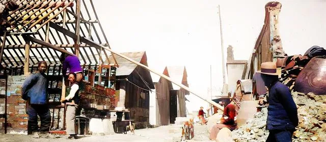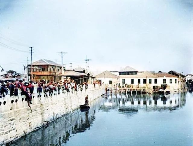 这第一张里头站着一群日本兵,胶片颜色早淡成牛皮纸色,能闻到烟草味,兵服棱角到袖口都是笔挺的,挨肩站一排,后面房檐斜着搭下来,右边有个家伙笑得满脸褶子,腰带上还挂着相机,那时候一张合影就是大事,旁边晃进来个穿便服的,脚下擦得锃亮的小皮鞋印进画面里,家里人看见这张都嘀咕,“这些是当天进城的吧”,我外公说他小时候见过这阵仗,城南那块地面光打得晃眼,日本兵一站满大街,衣服上的扣子咔啦咔啦响,全城气压像蒙上一层布一样压着。