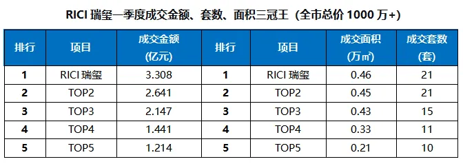 成交表现:华润置地“瑞系”与招商蛇口“玺系”两大TOP级产品线联袂,全市千万级豪宅一季度成交金额、套数、面积三冠王