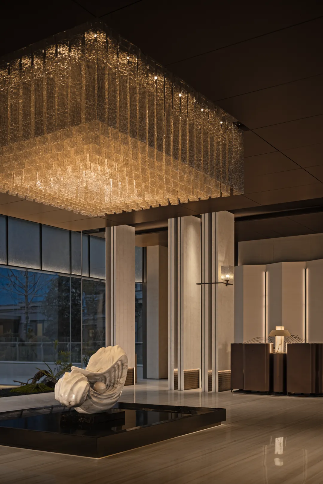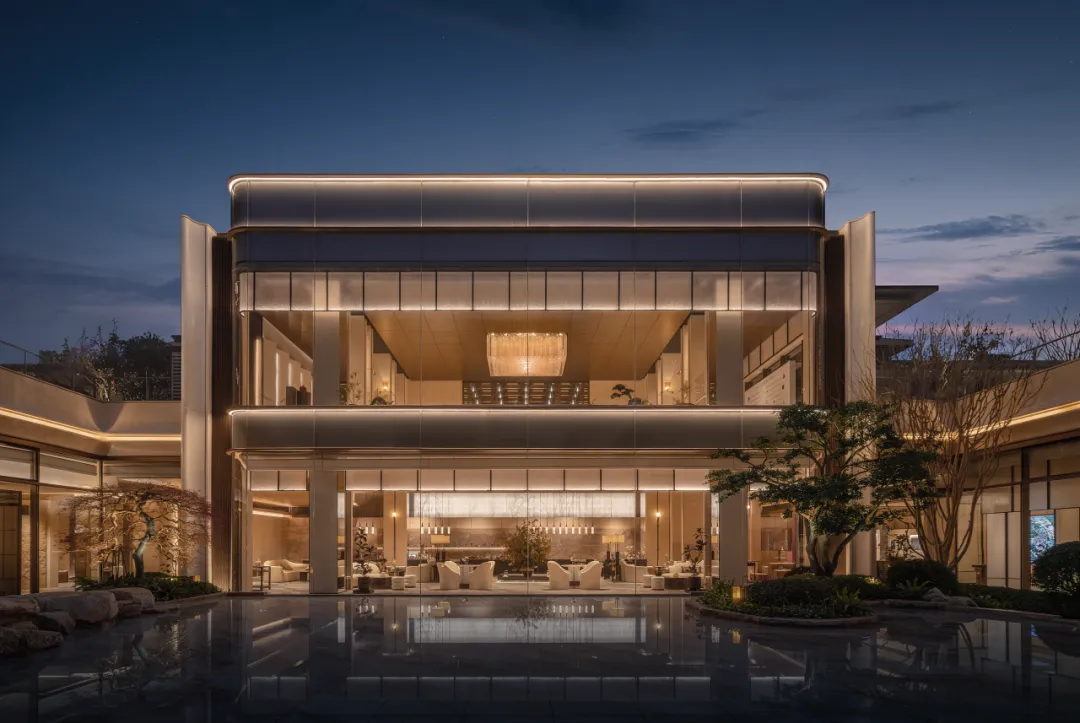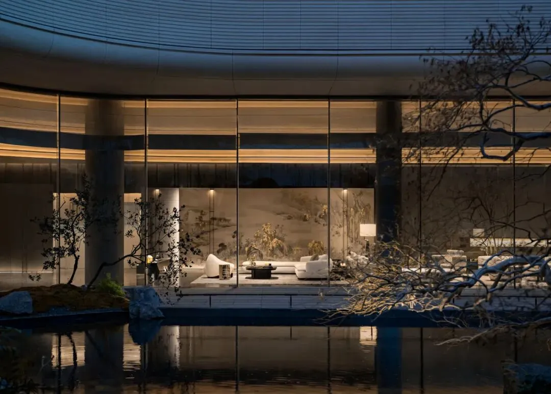 洽谈空间以简洁线条为骨架,巨幅玻璃为幕,将天光与外景完整框入室内,让自然景致成为空间的流动背景,视野无界。