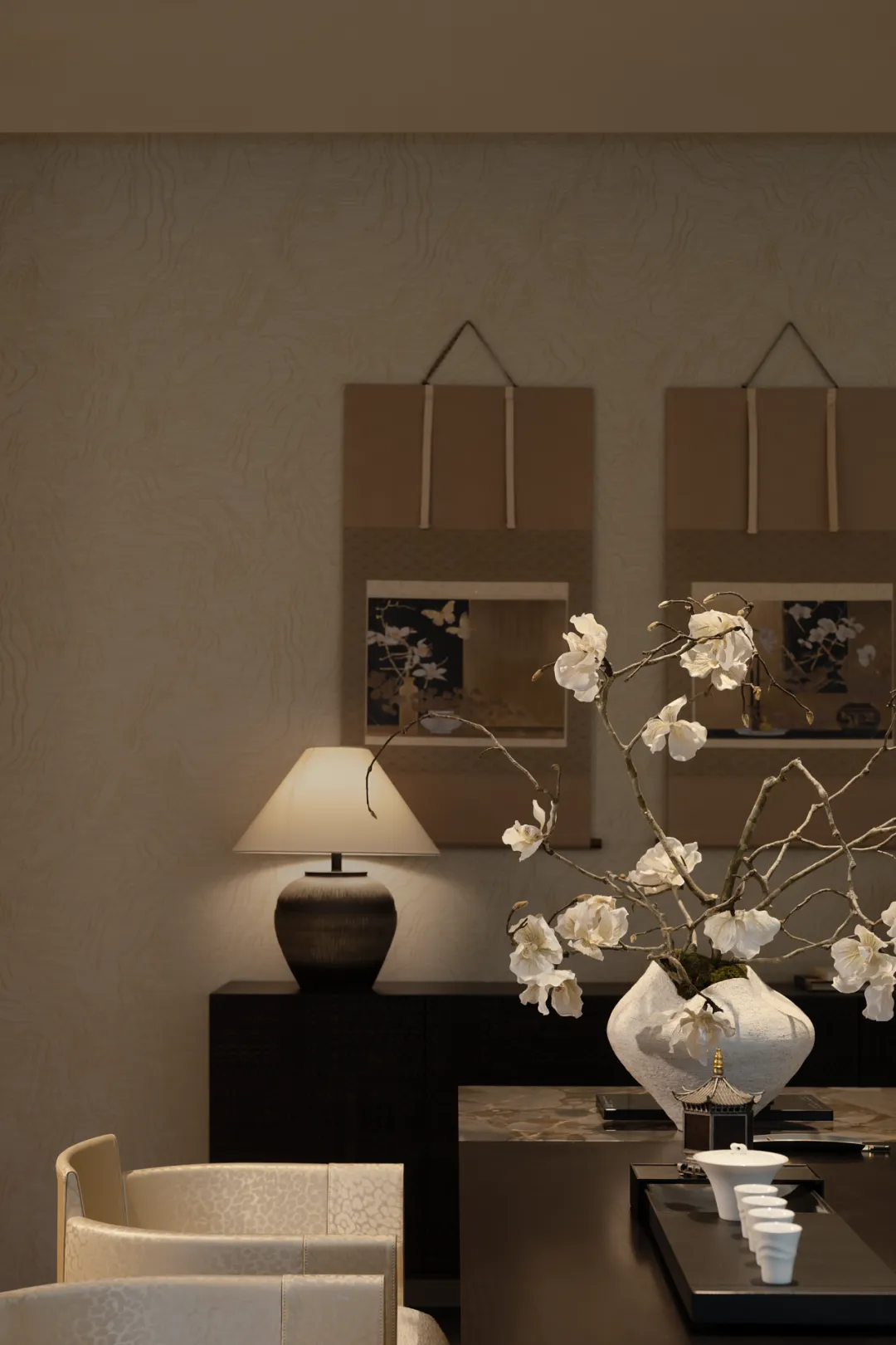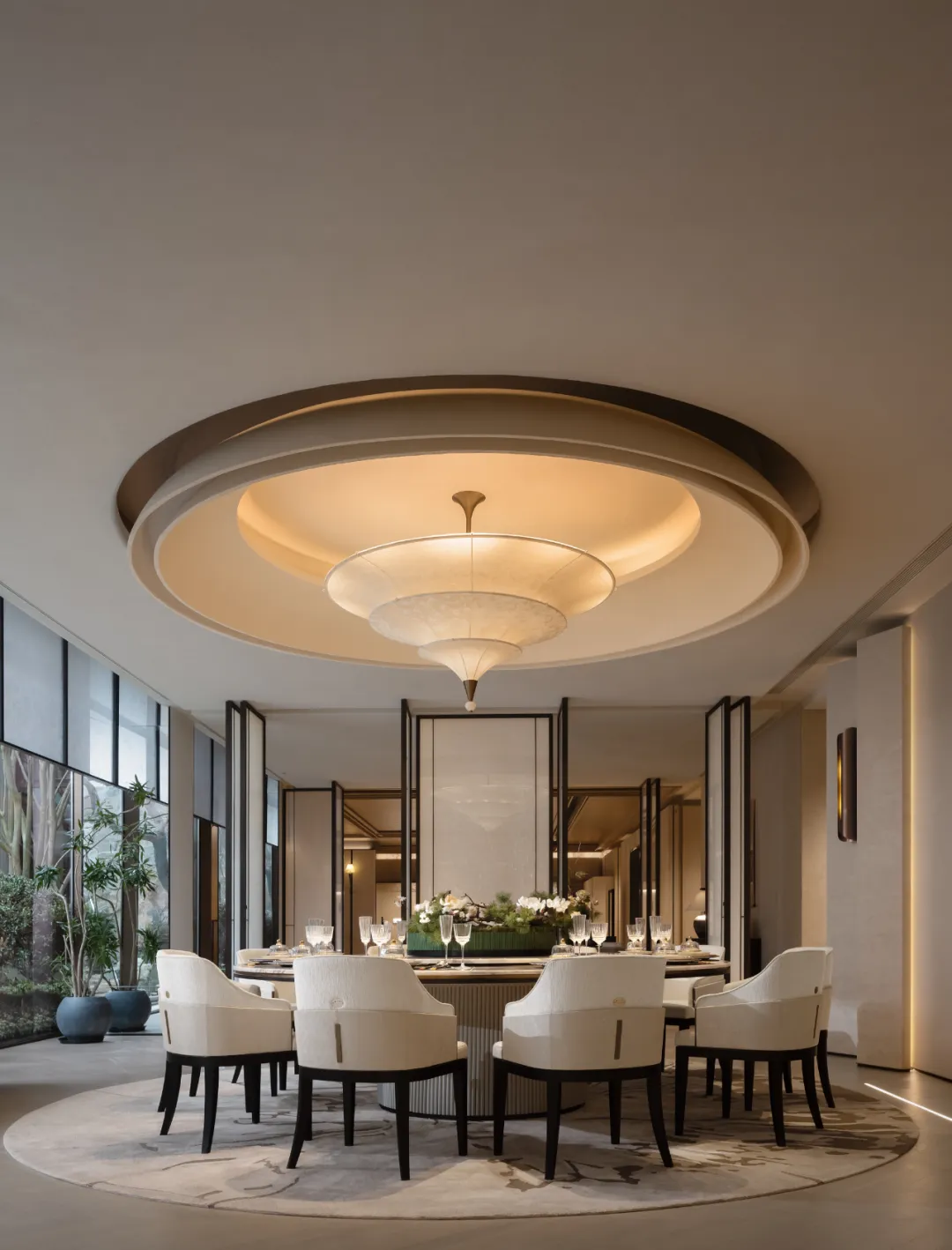 动线串联茶室与私宴,既各自独立又彼此呼应,暗合东方茶宴 “先茶后宴” 的礼序。于茶室清谈品茗,涤尽尘嚣;再入私宴围坐叙情,杯盏间尽藏东方待客之道。