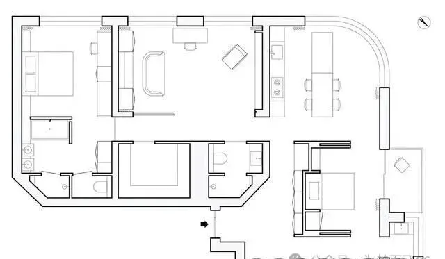 图里这个像枪不是枪的结构,就是他们家整栋的户型平面,拐来拐去,左一鼓右一凸,不中规中矩那种,但是每个屋都有窗,屋里亮堂得紧,不像以前出租的小破屋,门口一拉开就是一股闷气,这地方把每一块边角都给用了,拐角挨着拐角,从头到尾都通透,夫妻俩说一句,房型啥样都不怕,关键要舍得瞎倒腾。