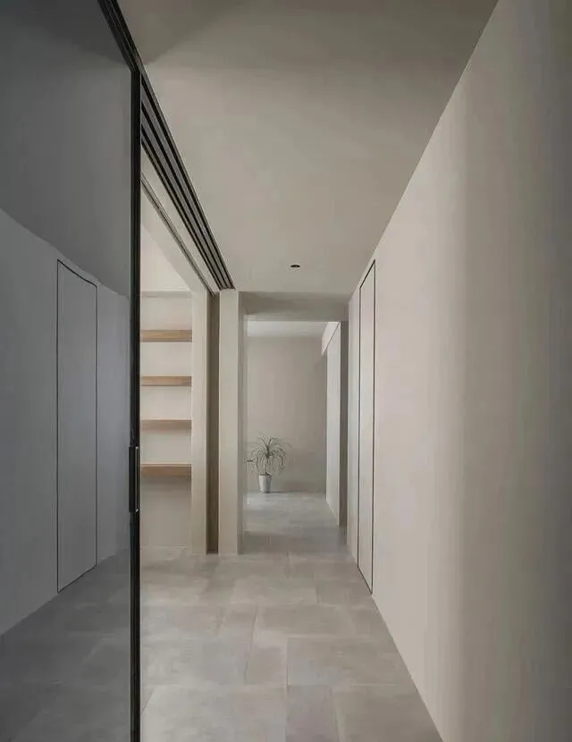 说起玄关,进门左手边是满满的柜子,右边也不空,柜门一拉,啥都能塞进去,鞋包杂物都遛进去没人看得出来,朋友第一次来还问,这么长走廊不浪费吗,主人嘿嘿一笑,白给的收纳墙你不要吗,存放空间比主卧柜子还能装,走路都带顺道感,关键有柜子藏着,外头再乱心里也稳。