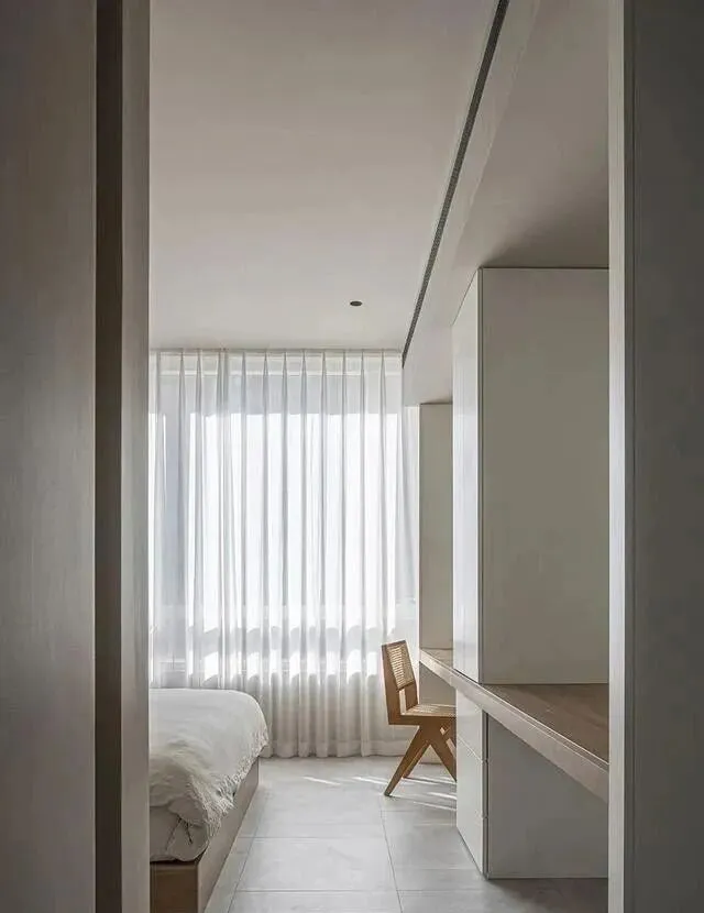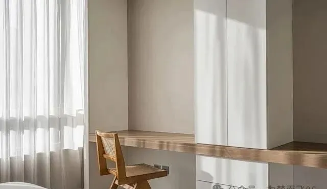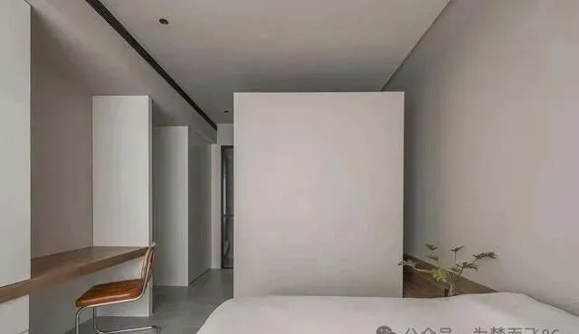 说主卧必须得提这套房里的L型隔断墙,硬生生把浴缸藏起来,墙上还开的缝口,人在外面透点影,在里面也不憋闷,梳妆台、书桌、衣柜按着顺序靠两边站着,床尾窄处都做了柜子,家里没一块地方落灰吃闲饭,现在想想以前睡那种老式通铺,哪懂这些小机关,男主人常说,一寸地都薅干净,屋子才够味道。