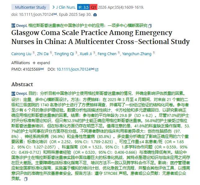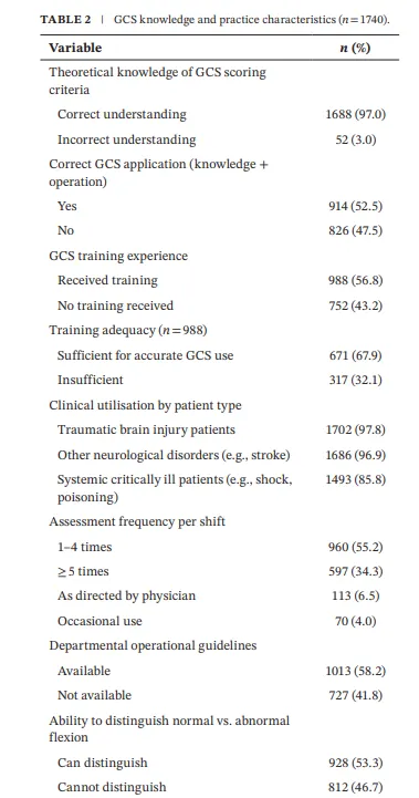 本研究首次通过大规模、多中心调查,揭示了中国急诊护士在GCS应用中的“知行鸿沟”。主要发现包括: