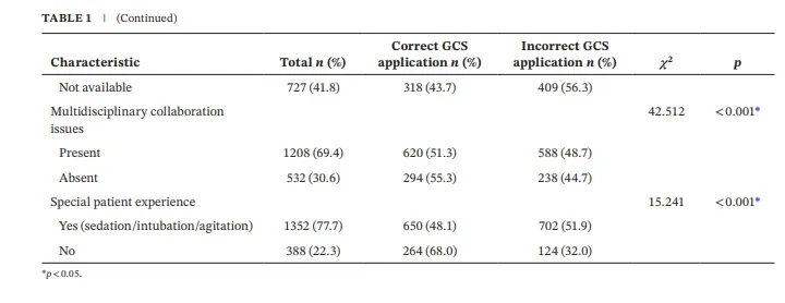 正确应用率:仅有52.5% 的护士能正确应用GCS(即在实际临床评估中能准确评分)。这提示理论知识与临床实践之间存在巨大差距(97% vs 52.5%)。