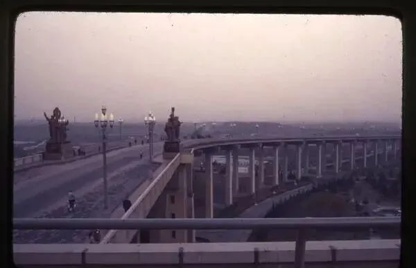 图中那个桥头的雕像群,南京人一看就认得,工农兵学商五个大人物,一左一右杵在大桥头上,气势摆那儿,走过去总想多看一眼,从小爸妈带我走过那的时候还会指给我看,这是那种只有旧照片里才有的气氛,天色淡紫,桥面静悄悄,远点儿是郊野,没人堵在路口,只有路灯杵着,玉兰灯头扎一串,晚上亮起来特别有精神,这才是南京大桥的标志,哪像现在前面高楼林立,谁还记得当年这一幕。