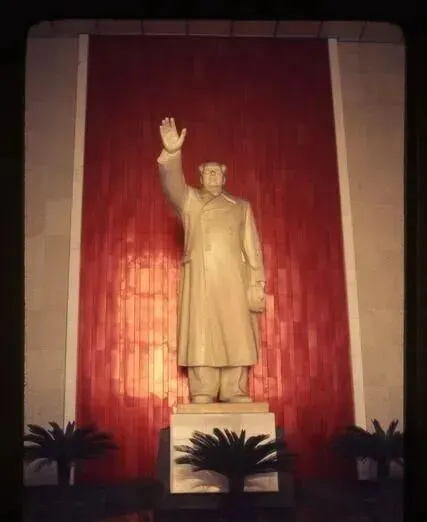 这个雕塑毛主席挥手致意,背后整个一堵大红墙,气场全靠这配色撑着,汉白玉做的,特别白,衣服还是那种双排扣大衣,右手高举,左手抱着帽子,小时候跟我爹进城买东西,总在里头绕一圈,我爸会指着雕像小声说一句,这个场景以前还在每天广播里念,现在见的人少了,雕像还杵得齐整,门口摆着小棕榈,不花俏,特别中国味儿。