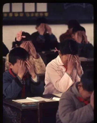 闭眼、捏穴、揉眼角,每天下午准时来一遍,木桌上摊满练习本,手掌小小的还不一定能按准穴位,后排趁机偷看窗外,老师扫一眼才低头装认真,这习惯十三点的,现在还真有学校保留,七十年代每天都得来两套,预防近视这说法家家嘴边都挂着,有时候我妈在门口看到会说,别偷懒啊,要不眼睛长大戴眼镜可不划算,那年头课桌糙归糙,烟火气一点不缺。