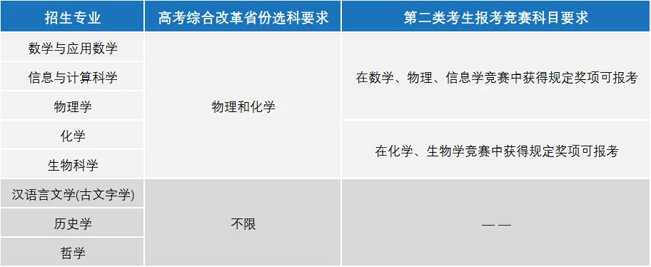 2026年南大强基招生专业分别是数学与应用数学、信息与计算科学、物理学、化学、生物科学、汉语言文学(古文字学)、历史学、哲学。招生专业不变,招生方向物理学专业新增“大气方向”。第一类和第二类考生分列计划。南大强基培养方案中明确:强基计划哲学、汉语言文学(古文字学)、历史学、化学、生物科学、信息与计算科学专业分别依托哲学学院、文学院、历史学院、化学学院、生命科学学院、计算机学院培养;强基计划数学与应用数学专业含数学与应用数学、智能科学两套培养方案,分别依托数学学院、人工智能学院培养;强基计划物理学专业含物理学、天体物理、电子科学、大气方向(新增)四套培养方案,分别依托物理学院、天文与空间科学学院、集成电路学院、大气科学学院培养。招生简章还明确,被录取学生入学后不参加面向新生的二次选拔,原则上不得调整专业,确有特殊困难或者特殊需要,无法继续在强基计划录取专业学习的,可以申请在强基计划招生专业范围内转到相近专业。对符合培养要求的强基计划学生实行本研衔接培养。进入研究生阶段后,学生主要在强基计划所在基础学科专业进行培养,部分学生也可根据培养方案在高端芯片与软件、智能科技、新材料、先进制造和国家安全等关键领域以及国家人才紧缺的人文社会科学领域进行学科交叉培养。南大的传统优势学科集中在文理基础。