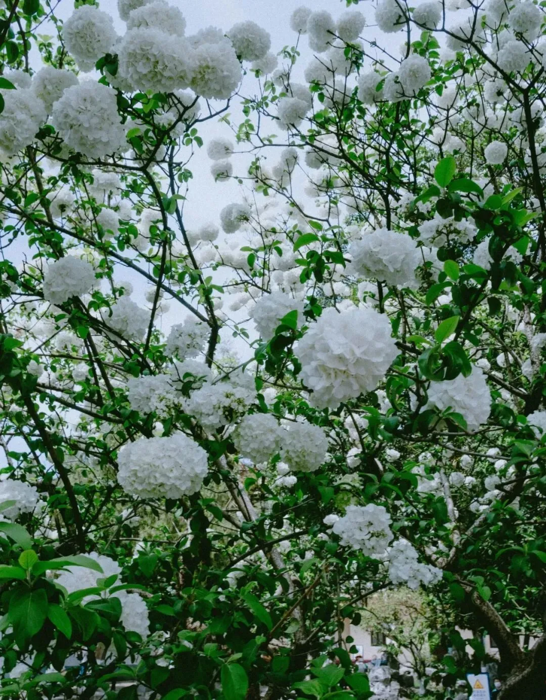 站在粗壮的花树下,抬头望去,满眼都是层层叠叠的雪白花球,仿佛闯入一片白色花海。
