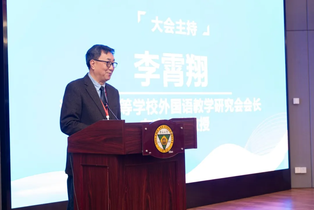 本次年会聚焦新文科建设背景下人工智能对外语教学带来的机遇与挑战,共设有六场主旨报告、三个平行分会场、会长论坛和校企交流等环节。江苏省高等学校外国语教学研究会会长李霄翔教授主持开幕式。