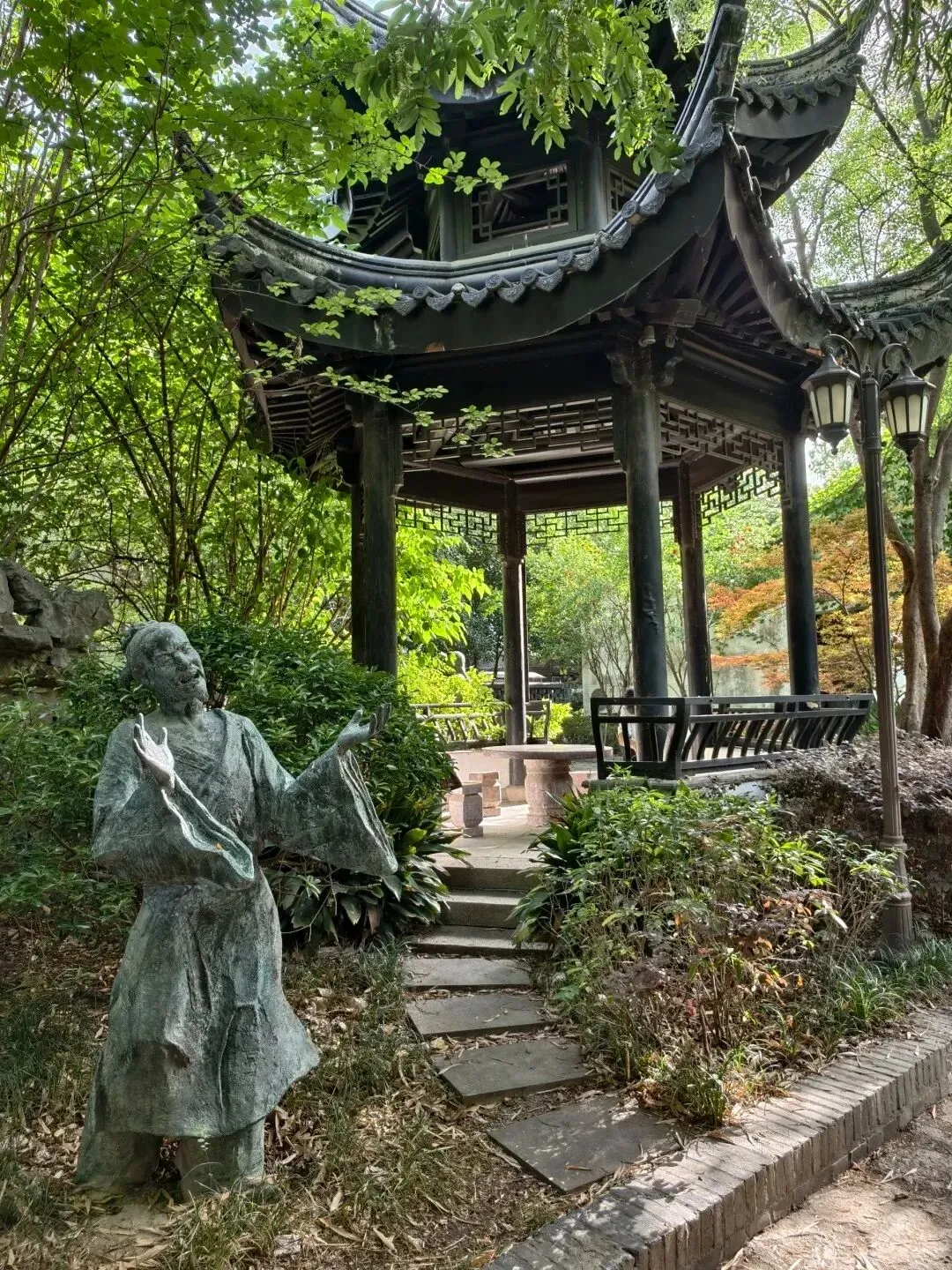 如今站在原址重建的扇亭之中,脚下的青石板与西假山上的景致,仿佛在诉说着书中的文人雅韵。