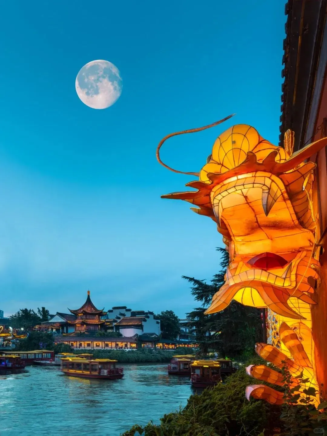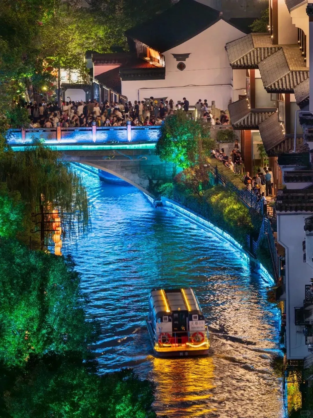如今站在桥上望去,两岸白墙黛瓦错落,画舫缓缓划过,与书中“水满的时候,画船箫鼓,昼夜不绝”的景致悄然重合。