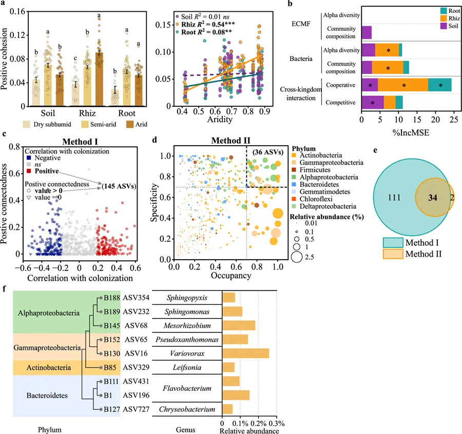 2. 揭示了外生菌根际细菌群落的生态位调整与跨界合作是驱动极端干旱条件下树木菌根化建立的核心决定因素。
