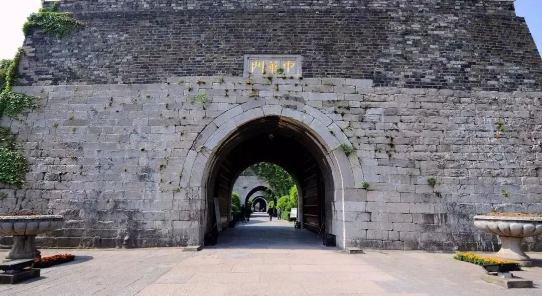 南京中华门,是南京明城墙十三座明代京城城门之一,其东西宽118.5米,南北长128米,由主城台、三道内瓮城、四道券门和27个藏兵洞组成,呈“目”字形结构。明清两代称聚宝门,因为形似陶瓮,故又称瓮城,为明代都城的正南门,1931年改名为中华门(取振兴中华之意)。明南京城是以南唐金陵城为基础扩建而成的,聚宝门就是金陵正南门址,前临外秦淮长干桥,后倚内秦淮镇淮桥,一向是交通孔道,位置极其重要。