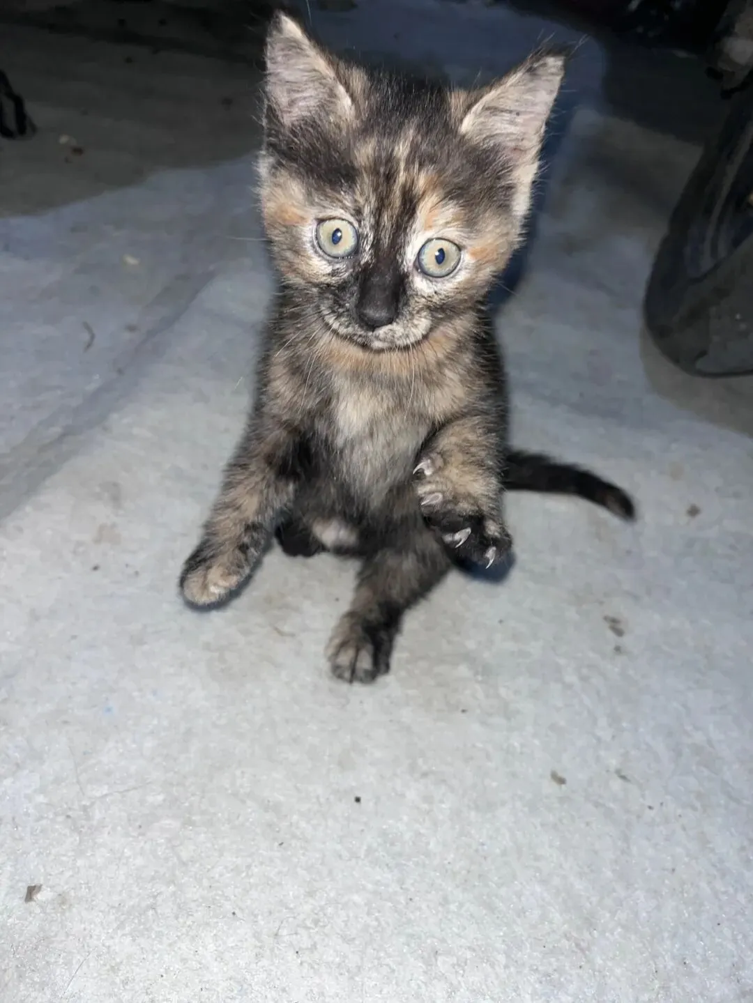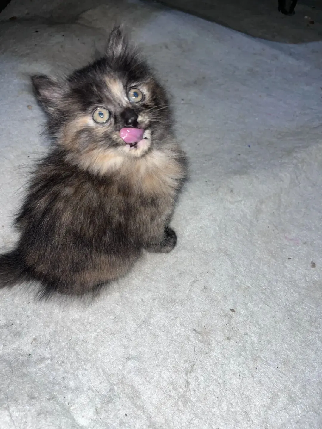 第一只长毛玳瑁妹妹和第二只短毛玳瑁妹妹黑棕相间的毛发像被大自然晕染过的油画,蓬松柔软,摸起来像云朵一样。圆溜溜的蓝绿色大眼睛,总带着好奇打量世界,会歪着脑袋蹭你的手,会举着小肉垫和你互动,还会舔着小舌头卖萌,软乎乎的样子瞬间就能融化人心。它活泼亲人,一点都不怕生,是个会主动贴贴的小甜豆。