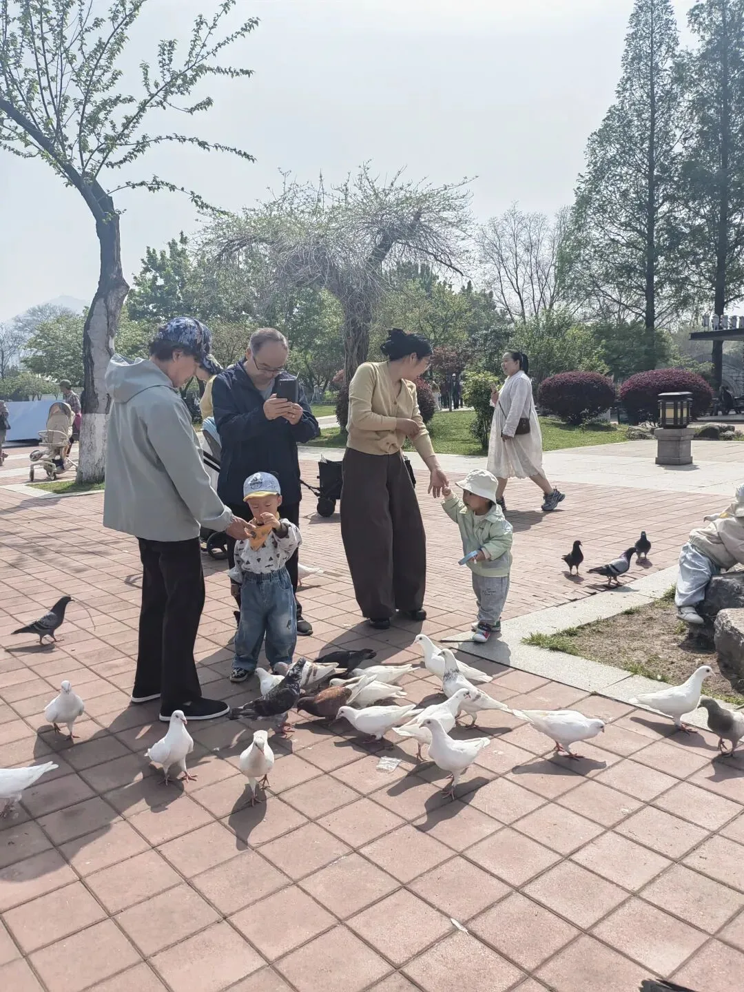 玄武湖是喧嚣都市中的一方净土。“宁静”与“治愈”是常被提及的感受。来到玄武湖,可以在临湖长椅静坐,观水鸟、听风吟,享受时光慢流。听说环湖步道被誉为“江苏省最美跑步线”。今天碰到四五批幼儿园的老师带着小朋游园,甚是可爱。也有好多家长带着小朋喂鸽子。