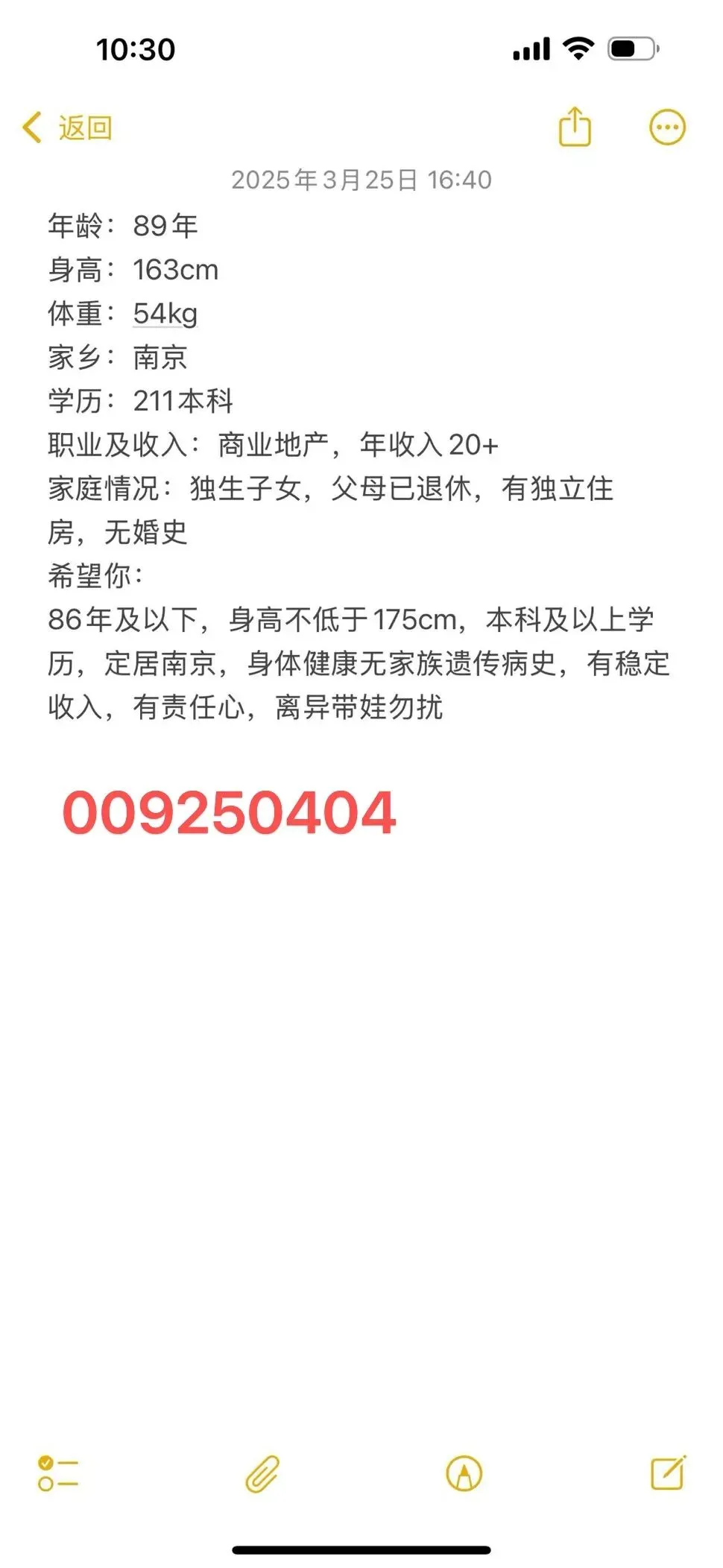 这是一个浮躁的时代,也是一个认识人成本极低的时代,无效的人和事占据太多的时间,骗子、约炮、理财销售等等让我们产生焦虑、内耗,为了帮助大家节约时间,相亲宝公众号发帖人不公布联系方式,我们红娘负责过滤一些不靠谱的人,专门进行验证核实。提示大家:相亲急切的心情可以理解,但相亲过程中不要有任何金钱往来,切记切记。精准一对一推荐介绍,唯一线下门店地址:秦淮区大行宫长安国际2307。