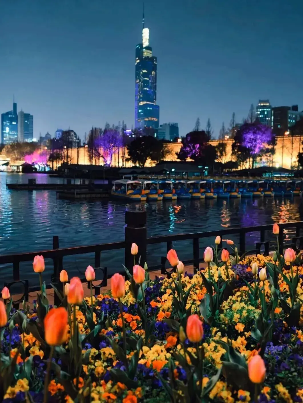 构成一幅绝美的金陵春日夜景图