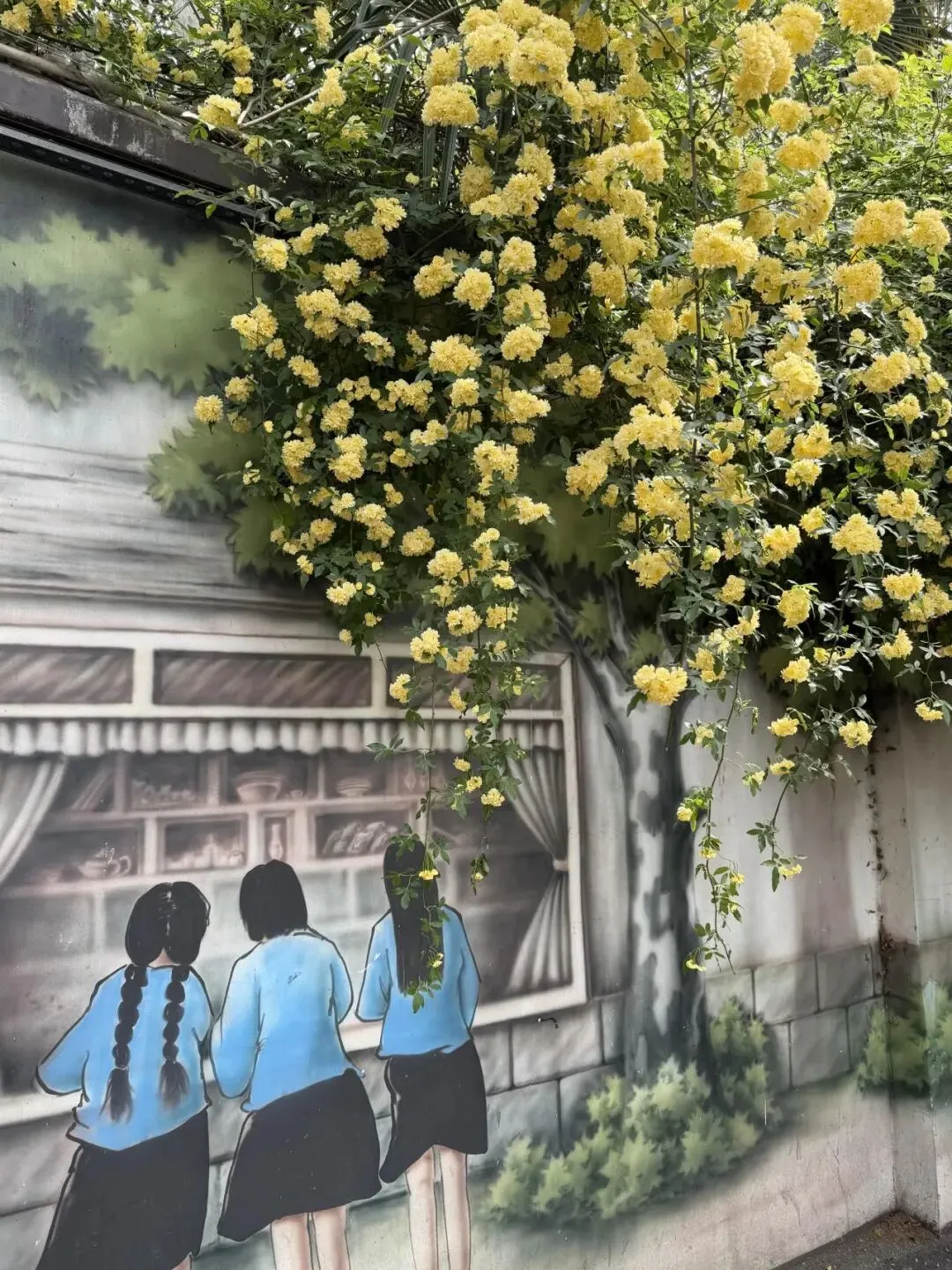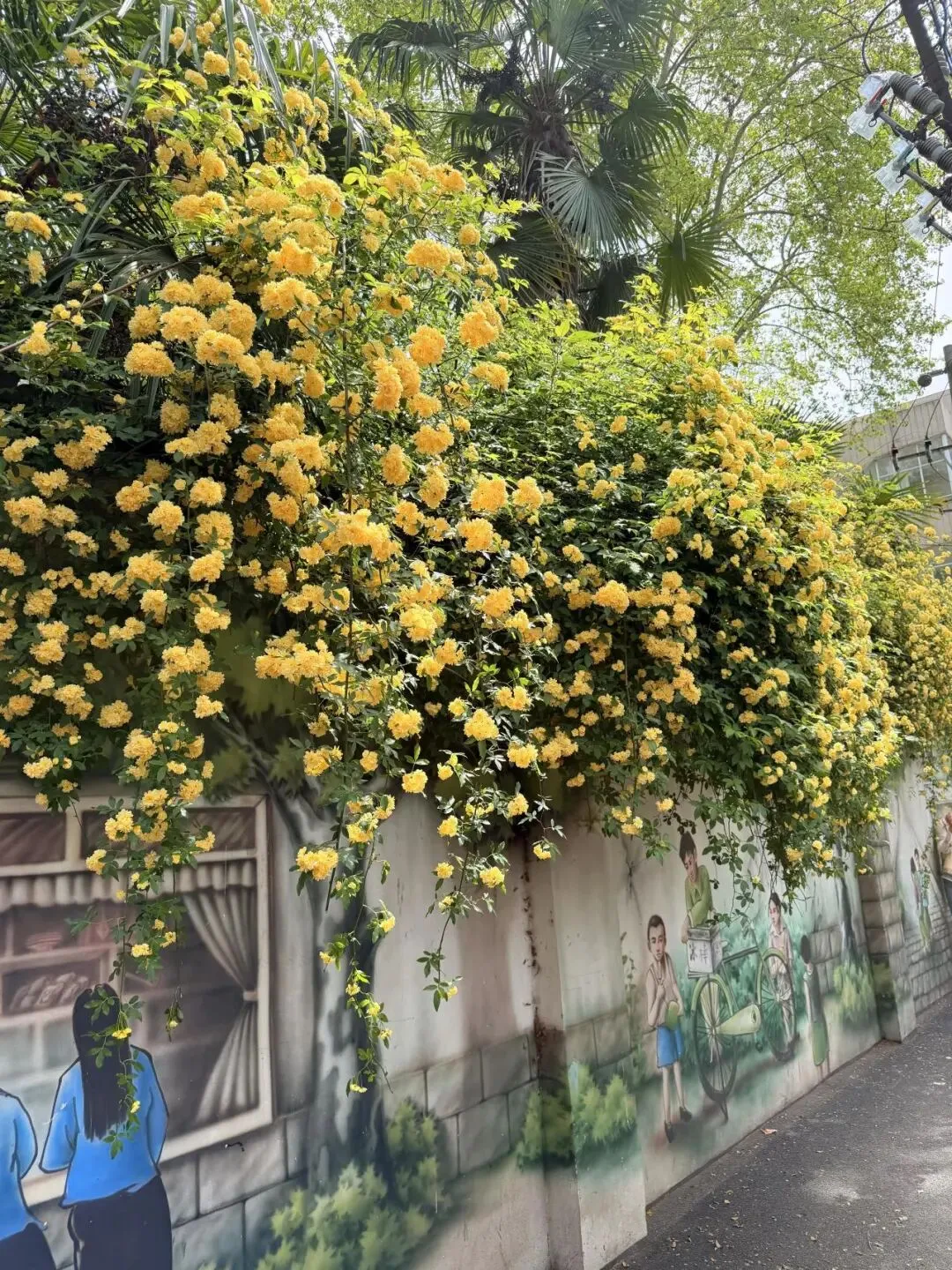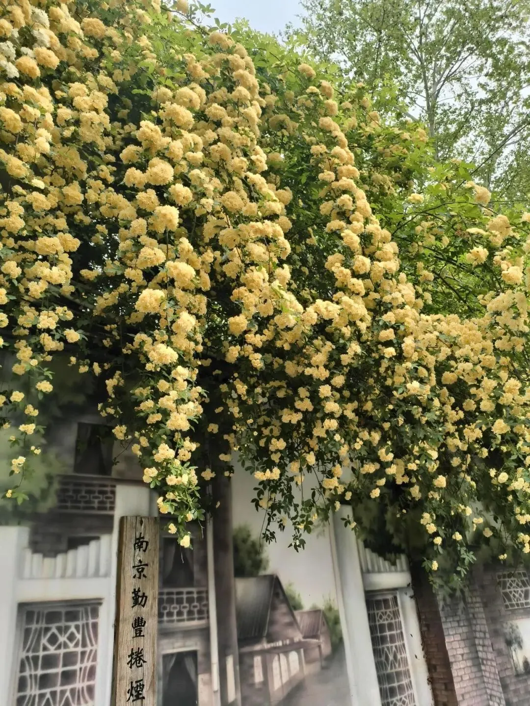 南京地铁2号线直达的木香花已开爆!!盛开在民国风手绘墙上的黄色瀑布,好看又出片!!4月限定浪漫已上线,不用抢机位的好去处!!