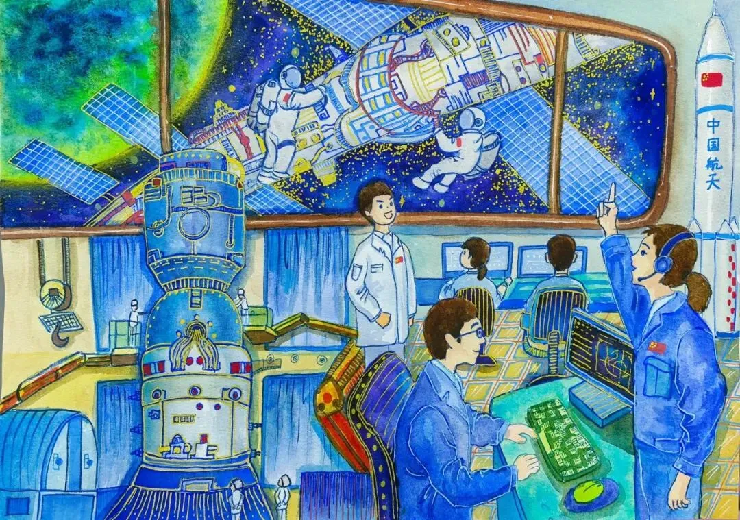 据悉,本届“天宫画展”于2025年7月启动征集,在全国1.5万余幅报名作品中,仅80幅画作成功突围,堪称“万里挑一”。值得骄傲的是,除了《激情苏超》,江苏还有2幅佳作一同亮相中国空间站,均来自南京小学生:南京市成贤街小学刘槿一的《致敬航天追光者》,以及南京市游府西街小学盖俊铮的《逐梦蓝天的“航空赤子”》。