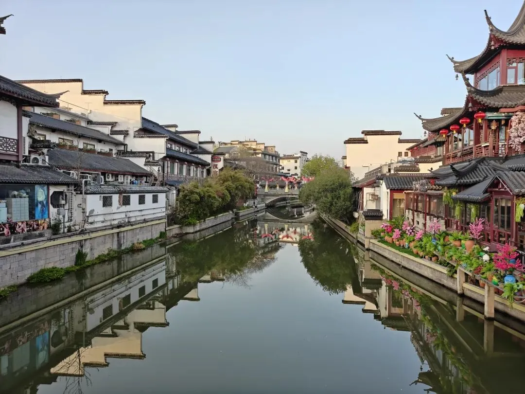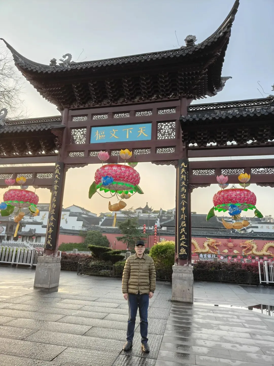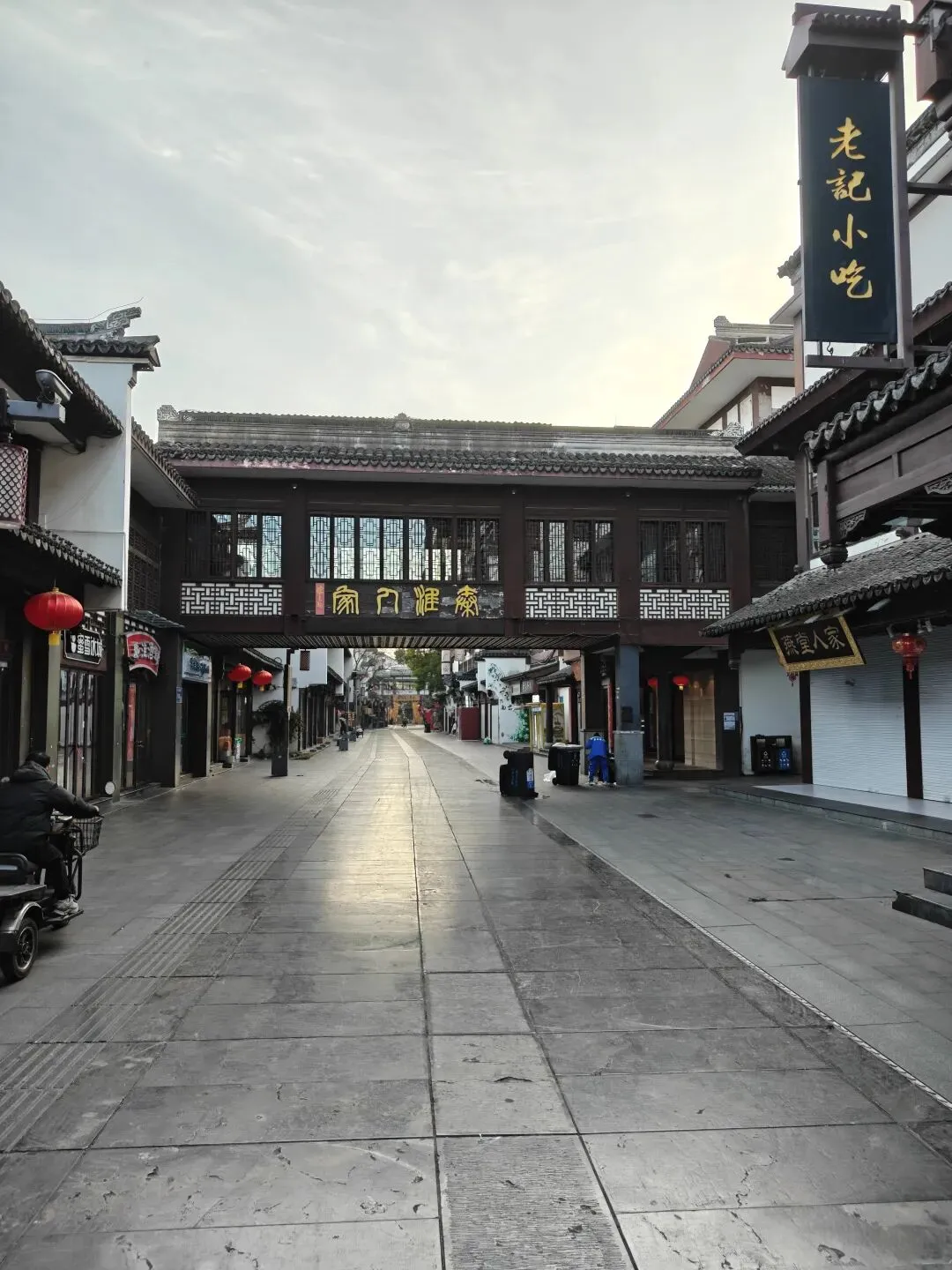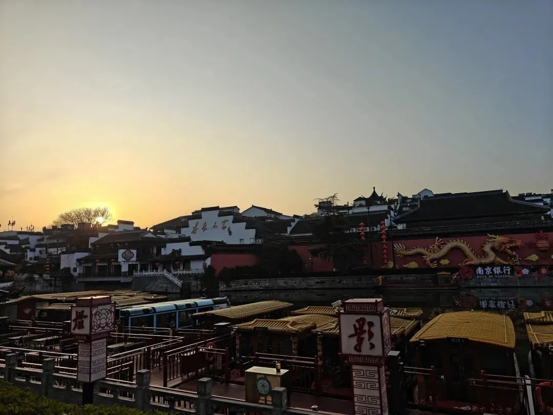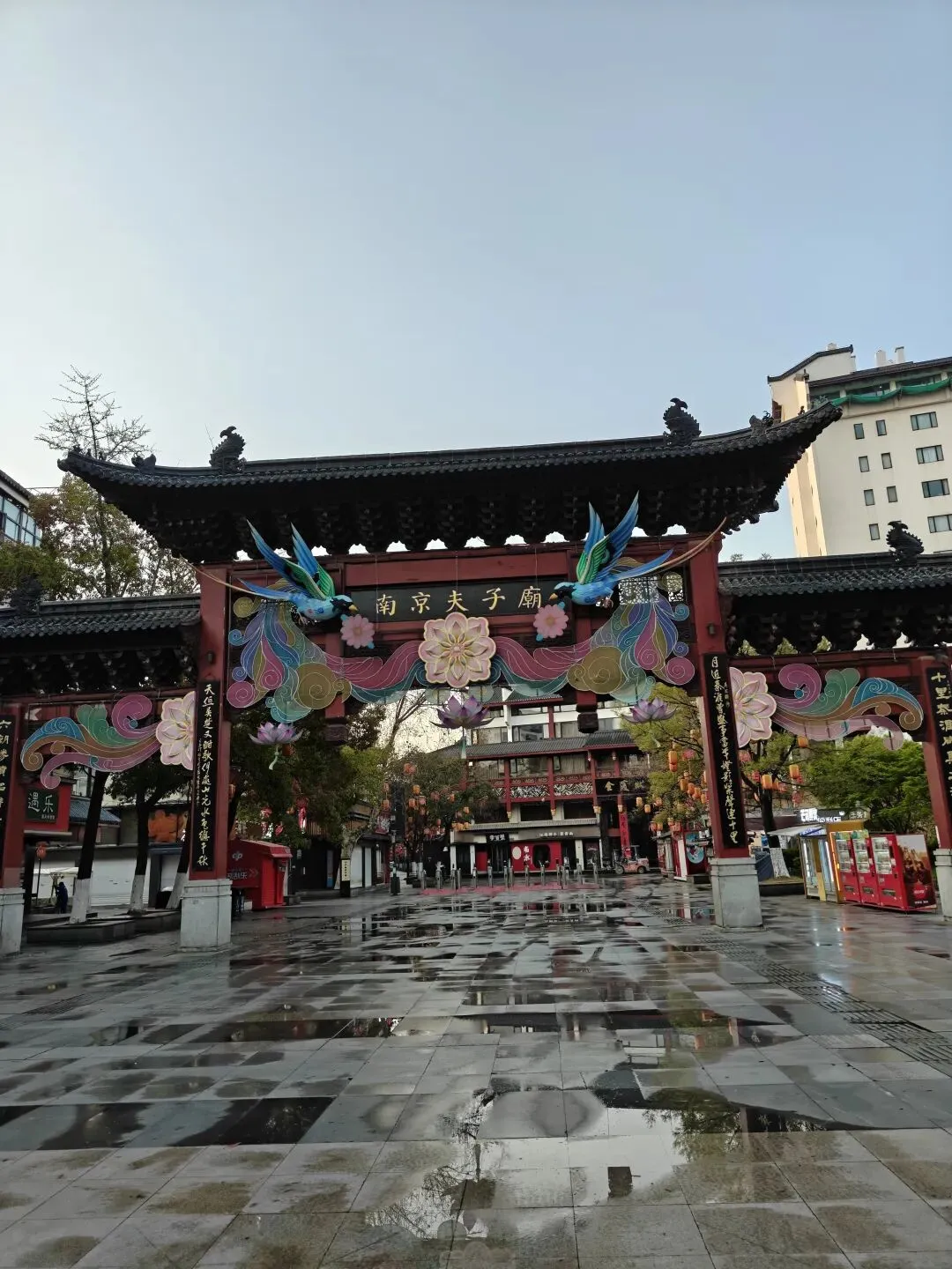 出了南京站,挨着站前广场,就是玄武湖景区。我们在湖边散步逛了一会儿,就坐地铁去夫子庙,在那里打卡了南京特色小吃鸭血粉丝汤和鸡汁汤包。用完早餐后,就进入夫子庙景区游玩,景区是24小时开放的,只不过去的时间比较早,所以看起来挺冷清,大部分商户也没有开门。不过可以沿着秦淮河风景线一直往前走,可以打卡拍照许多地标性建筑。老门东、中华门景区也都在夫子庙附近,我们顺带也都在外围看了看,没有买门票进去,因为时间来不及。