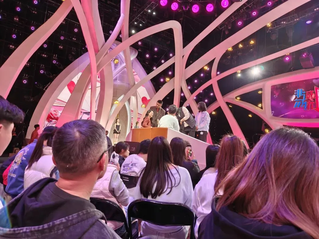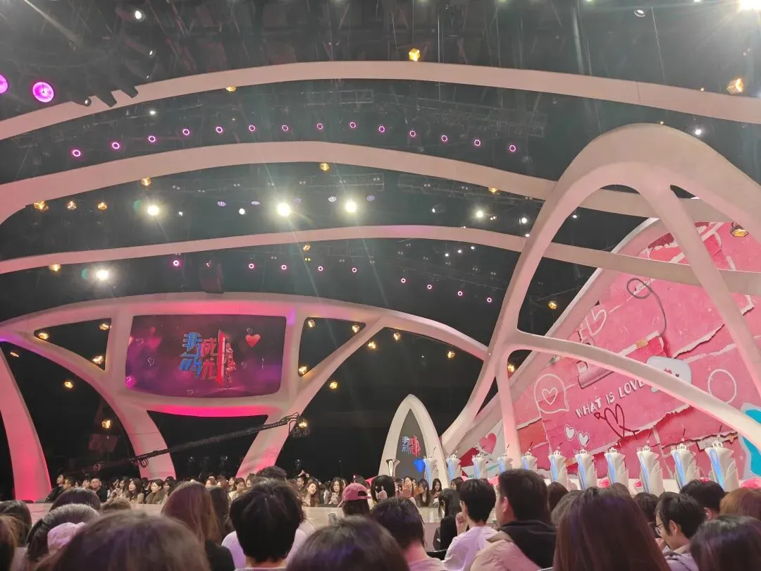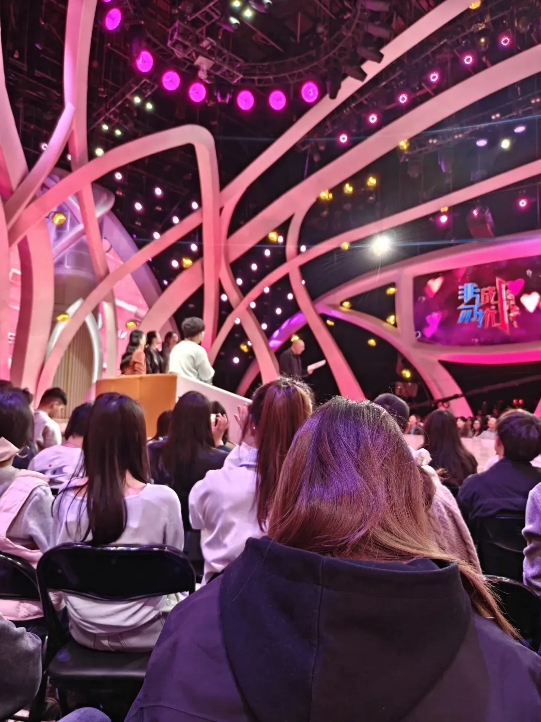 想当年读大学的时候要是遇见这种类型的女生,我早就陷入爱河了,哪用得着现在单身舔别人的狗粮。可能是当时就读的专业是属于理工科的铁道运输,男女比例严重失调,个位数的女生就像是大熊猫一样的珍贵物种,被宠上了天。遇见同学,她是个女的就不错了,还想要美女,还想人家会打扮,想啥呢!等了将近有两个小时,导演终于安排观众队伍入场了。一般颜值比较高的、性格比较外向的,导演会安排他们做前排座椅,充当氛围组,配合着呐喊尖叫什么的。坐在前排自然是有特殊福利的,比如有时候男嘉宾会带一些零食土特产,要是分给24位女嘉宾和主持人导师后还有剩余的话,就会被前排观众瓜分掉。并且如果很优质的男嘉宾遗憾离场的话,前排中意的女观众还可以争取一下。
