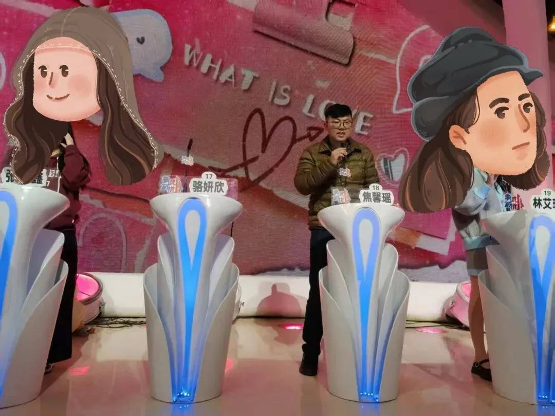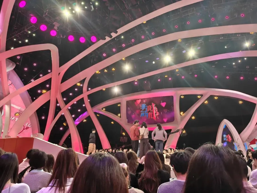 录制马上就要开始了,这时候导演会和我们讲一些录制时的注意事项,比如要摘掉帽子、书包放在座椅底下。在准备的期间,还会有模拟演练环节,导演会挑选几位幸运的男女观众站上台前演练男女嘉宾的对话,包括自我介绍提问回答,也挺有意思的。