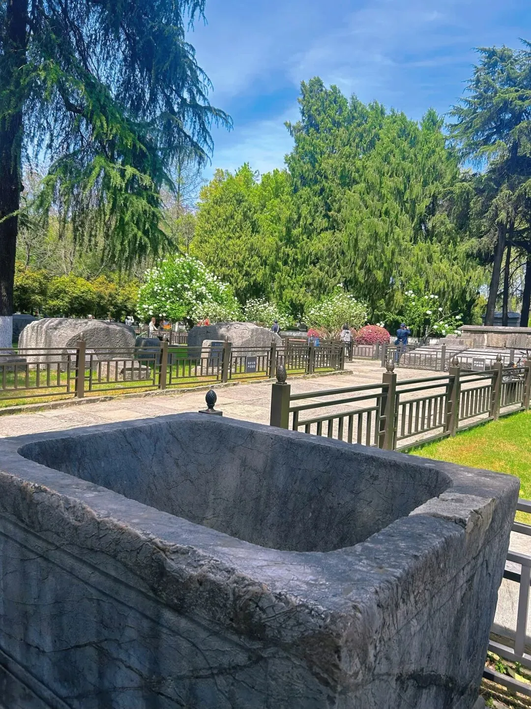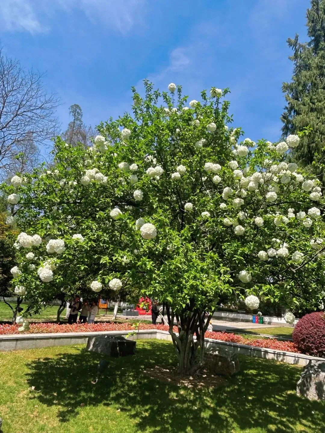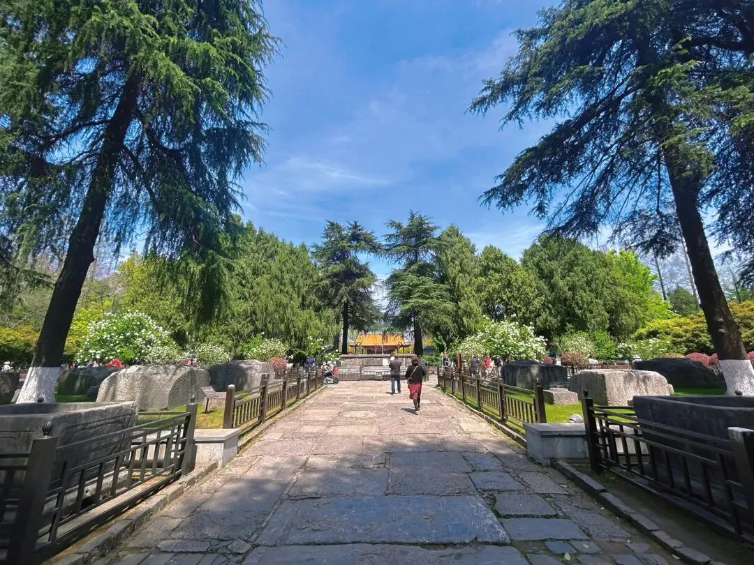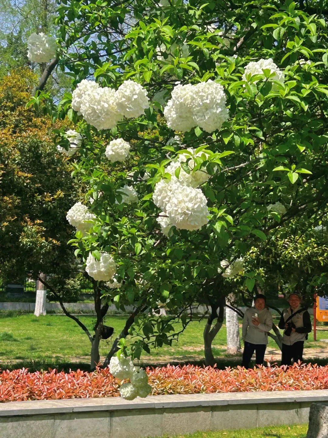 午朝门的绣球种在明故宫遗址的石刻周围,白色的花球配着斑驳的石板路、古老的柱础,那种历史感和生命力的碰撞,真的很有味道。