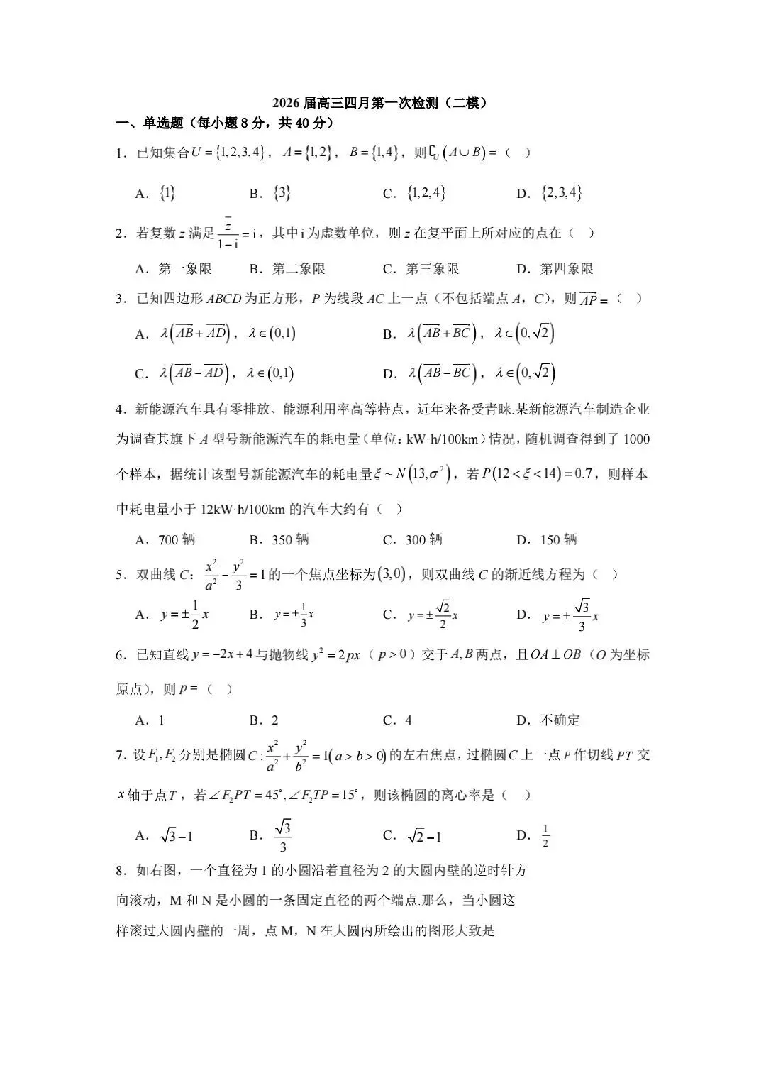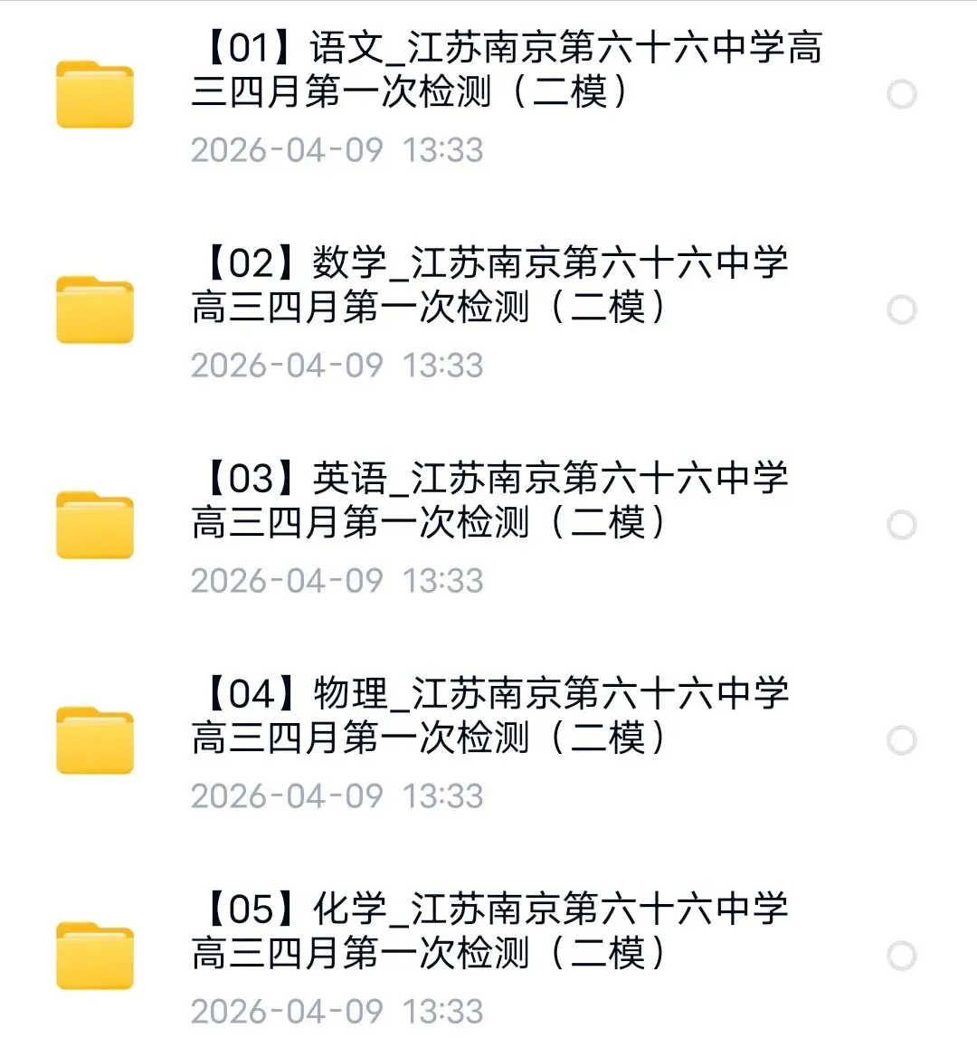 >2026年江苏南京第六十六中学高三四月第一次检测(二模)