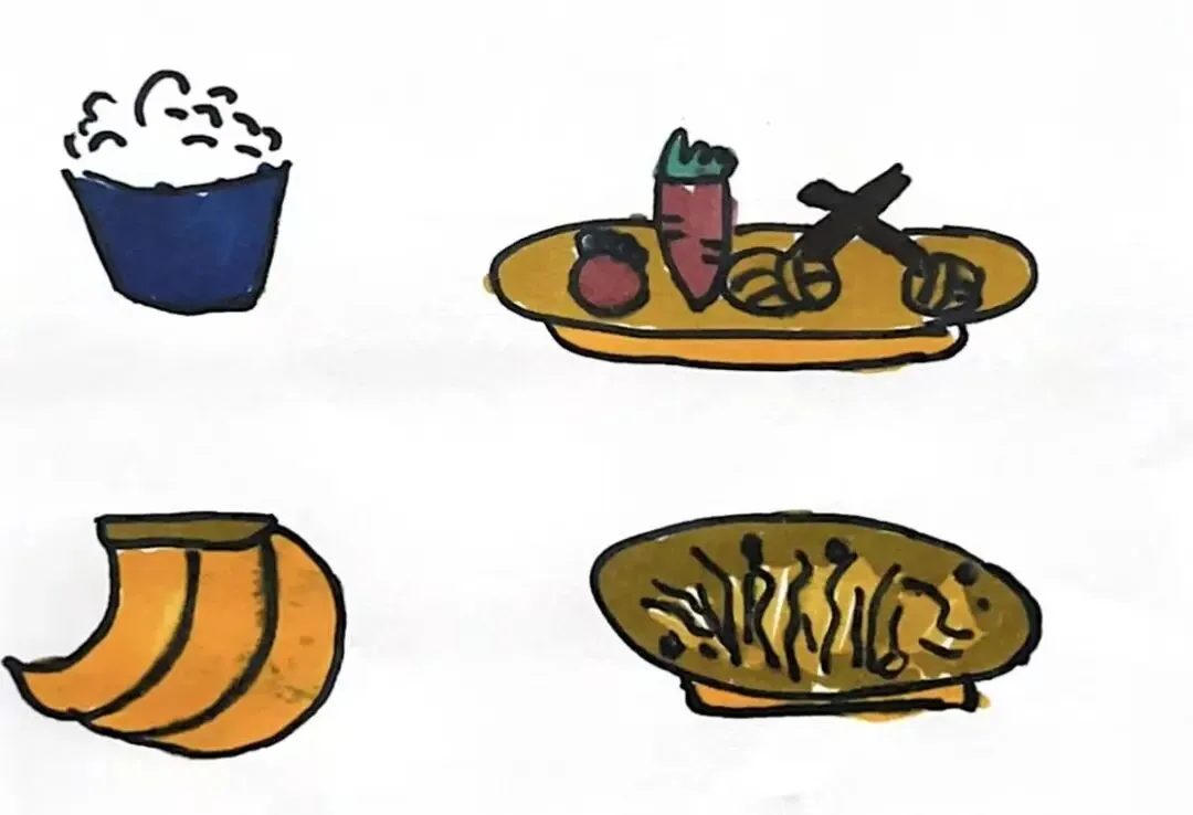 小米大米饭、酱汁仔排、西兰花胡萝卜炒香干、菊叶蛋花汤