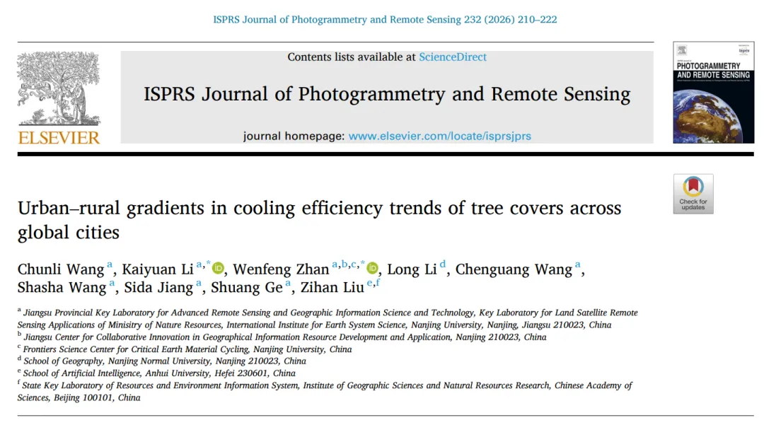Wang, C., Li, K., Zhan, W., Li, L., Wang, C., Wang, S., ... & Liu, Z. (2026). Urban–rural gradients in cooling efficiency trends of tree covers across global cities. ISPRS Journal of Photogrammetry and Remote Sensing, 232, 210-222.
