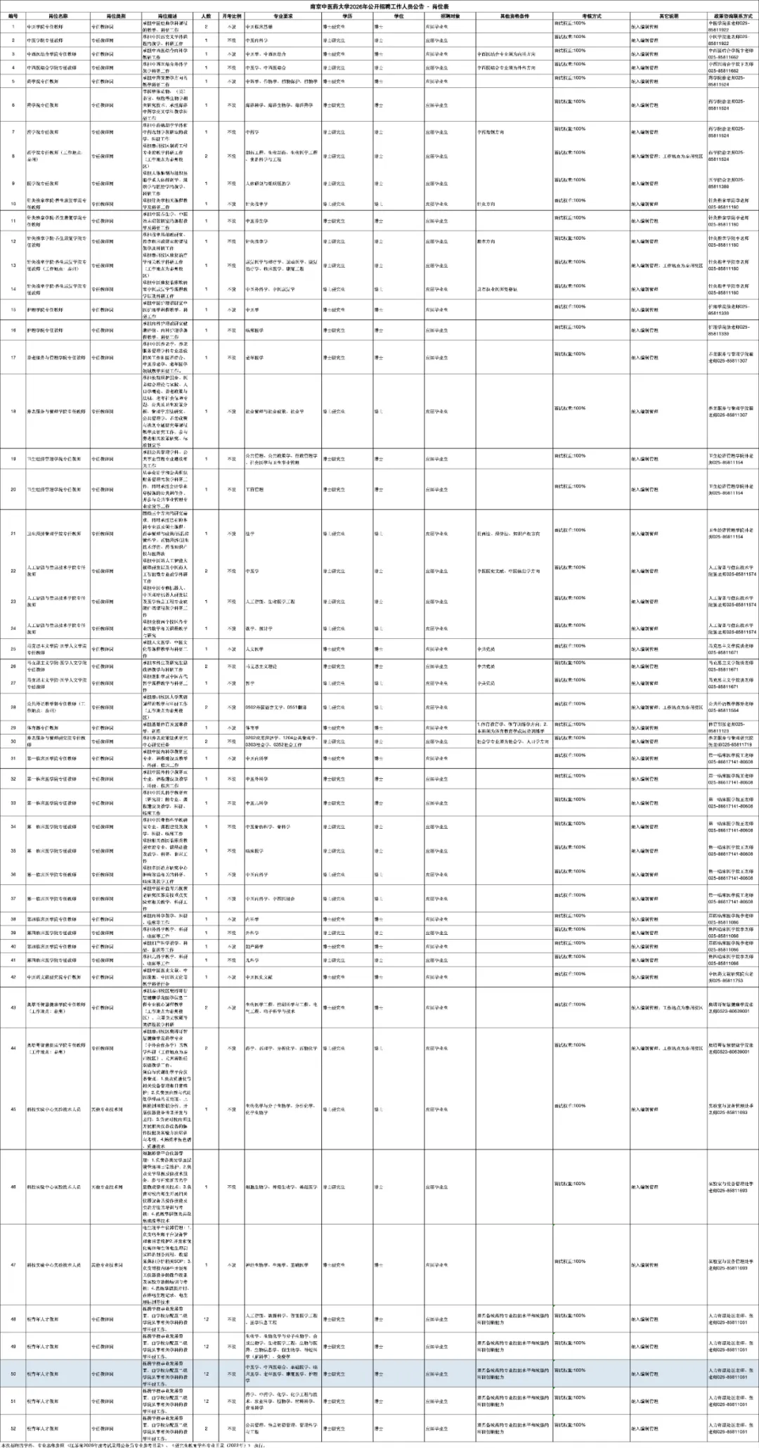 南京中医药大学2026年公开招聘工作人员公告-岗位表.xlsx