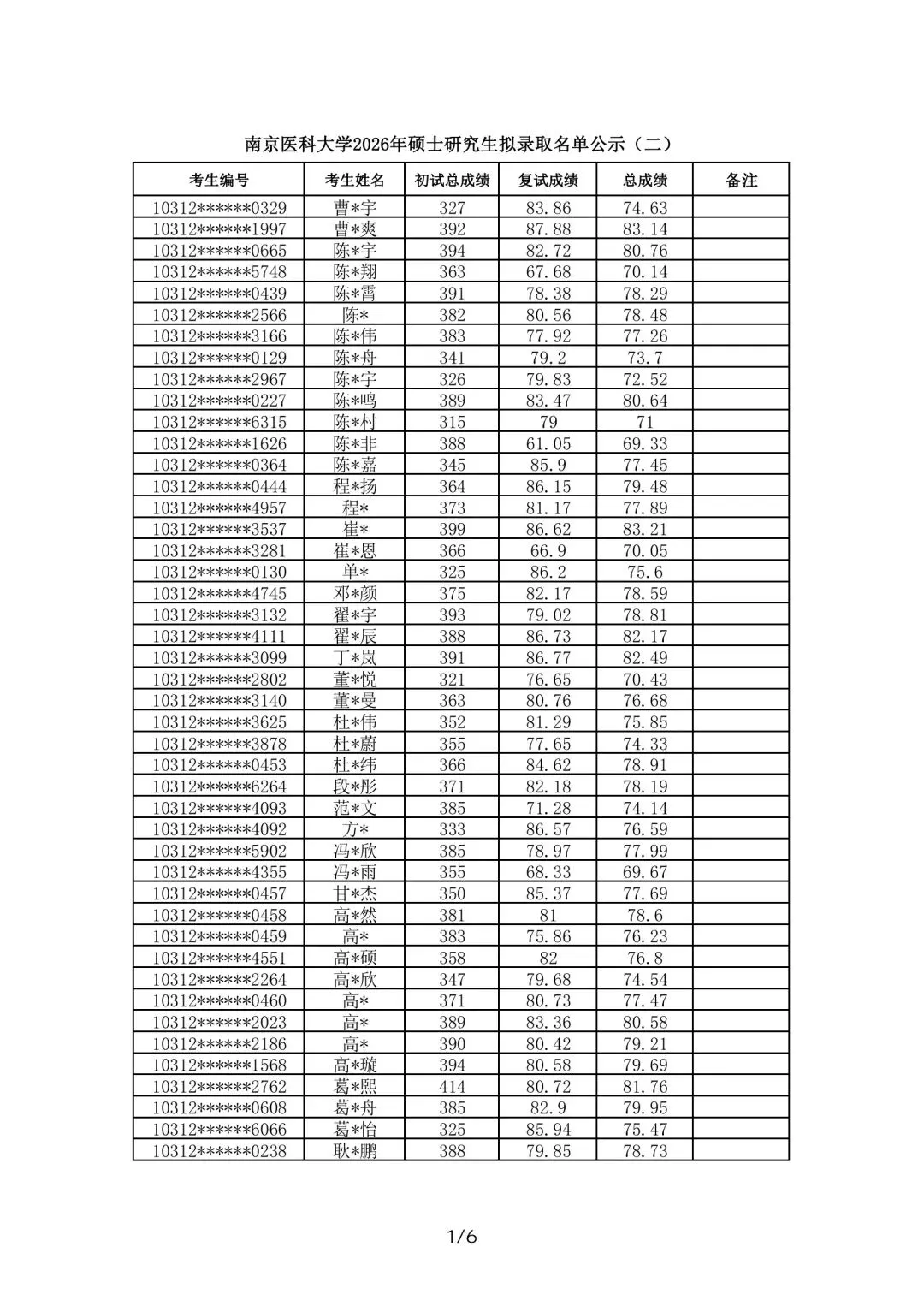 >南京医科大学2026年硕士研究生拟录取名单公示(二)