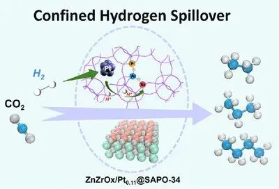 降低大气CO₂浓度需发展可持续化学转化策略,通过氧化物/沸石(OXZEO)双功能催化剂可将CO₂直接加氢转化为C20-C40链烷烃。先前研究表明,采用酸性较强的SSZ-13硅铝沸石作为沸石组分可促进氢转移生成烷烃,但也会加速积炭/失活;而酸性适中的SAPO-34硅磷铝分子筛虽显著提高了催化稳定性,却无法获得足够的烷烃选择性。