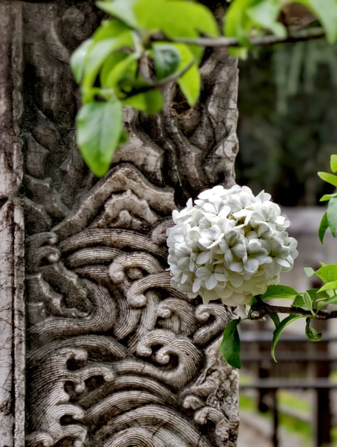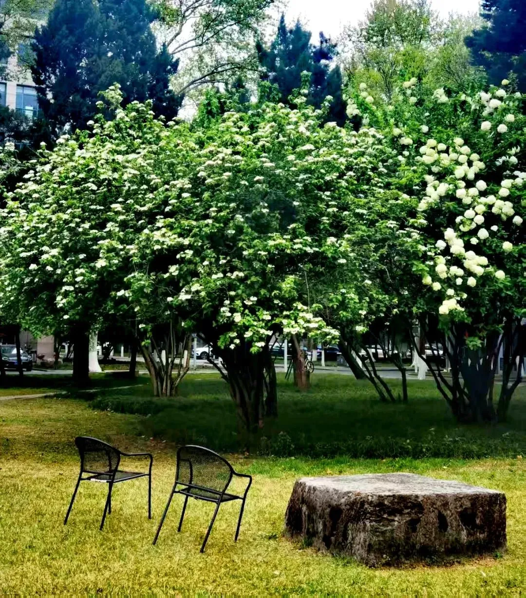 南航校园和明故宫遗迹公园里,还有开得正热闹的白色绣球花,簇簇洁白素雅的花朵依偎着明时的断壁残垣,一边是凝重的历史沧桑,一边是盛开的明亮妩媚,春草年年绿,春花年年开,她们比我们的生命更接近永恒。