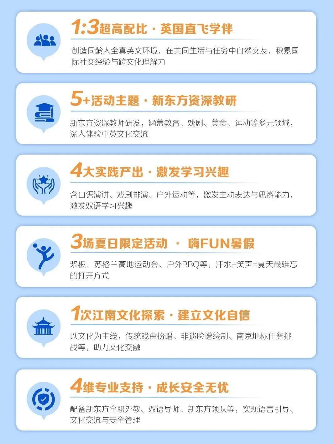 与英国直飞学伴、新东方外教同吃、同住、同交流,在24小时浸润环境中,轻松告别哑巴英语,实现从“被动回应”到“主动开口”的跨越。
