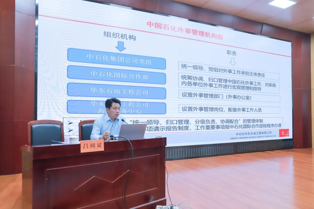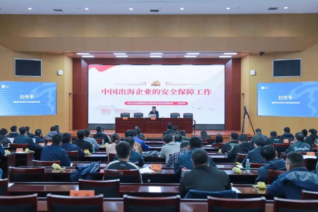 当前全球安全形势复杂严峻,境外安全风险持续攀升,企业“走出去”面临多重挑战。首日培训中,省委党校世界经济与政治教研部、中石化华东石油工程有限公司相关专家代表,结合丰富实践经验,系统讲解中国企业出海安全保障要点,深入开展企业境外安保体系建设与项目公共安全管理专题授课,内容务实、干货满满。