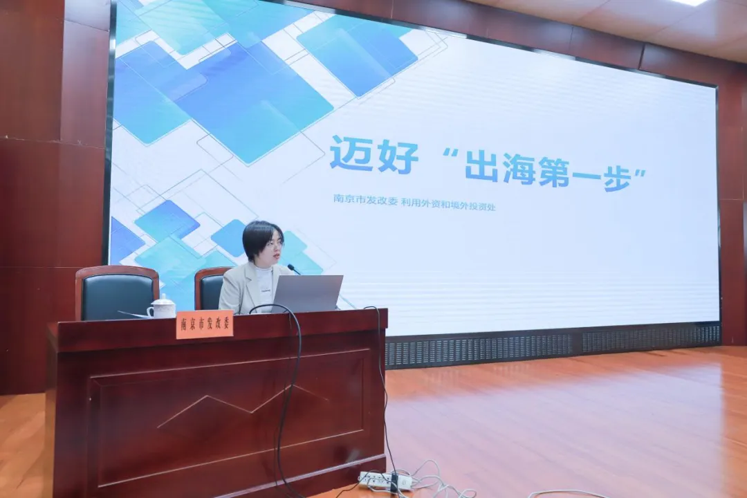 针对当前中东地区动荡局势,培训班特别邀请盈科律师事务所驻卡塔尔办公室主任,专题分享区域战争环境下企业运营安全,助力学员立足当下、预判风险,全面提升应对复杂动荡环境的实战能力;为破解企业“海外落地难、求助无门”的痛点,中阿(联酋)产能合作示范园、南京市建邺区驻新加坡经贸联络处两大海外服务平台作现场推介,为企业提供一站式落地支持与政策对接服务;市发改委相关负责人还就企业境外投资备案申报材料进行专项指导,助力企业合规高效“走出去”。