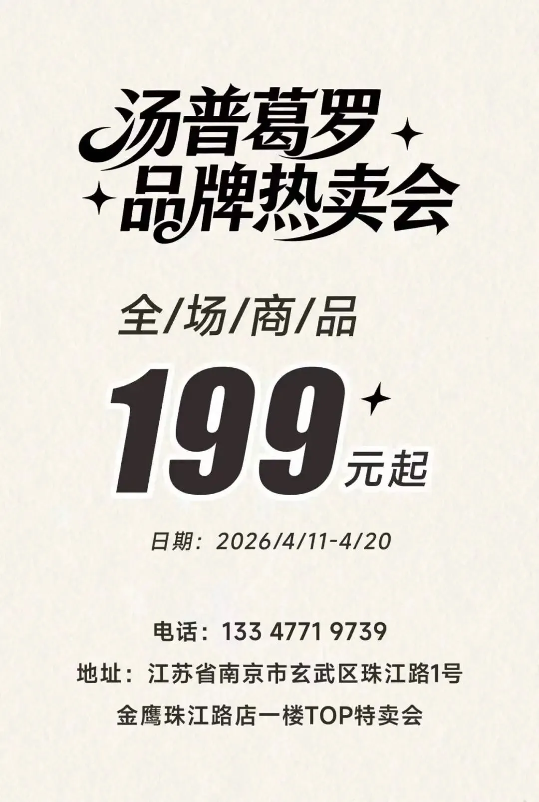 >2F南馆 · 汤普葛罗|南京金鹰珠江路店全场199元起!