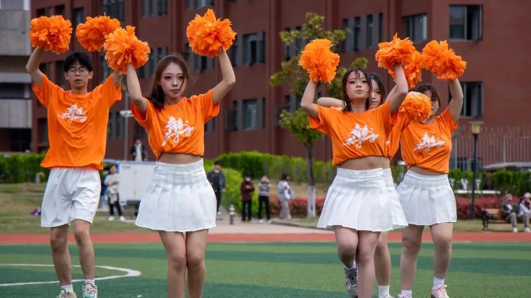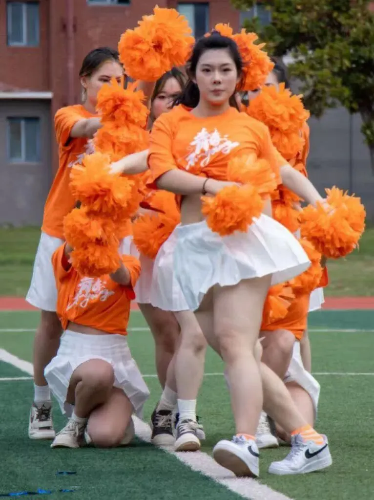 队员们目光坚定、笑容自信,用力量与美感交织的表演点燃全场。阳光下,花球闪烁,裙摆飞扬;看台上,掌声雷动,呐喊震天。音乐声、加油声交织在一起,成为田径场上最热烈的青春回响。短短两分钟的展示,凝聚了无数心血,每一帧画面都是对舞台的极致诠释。