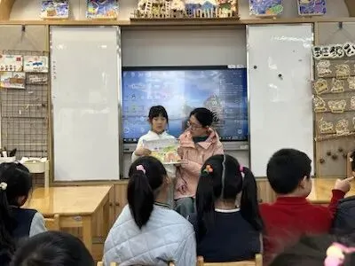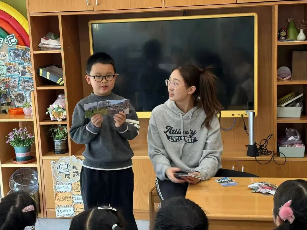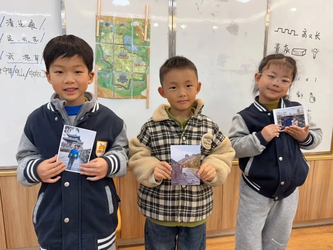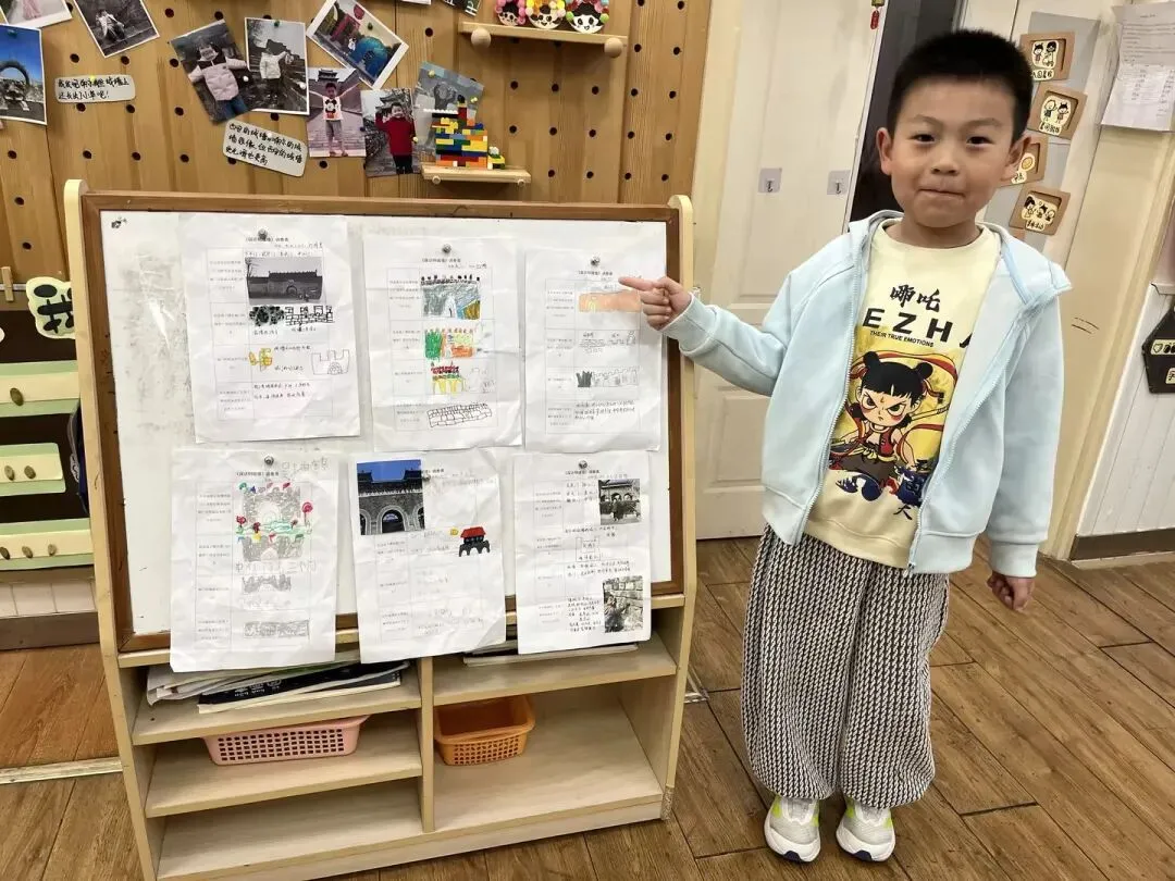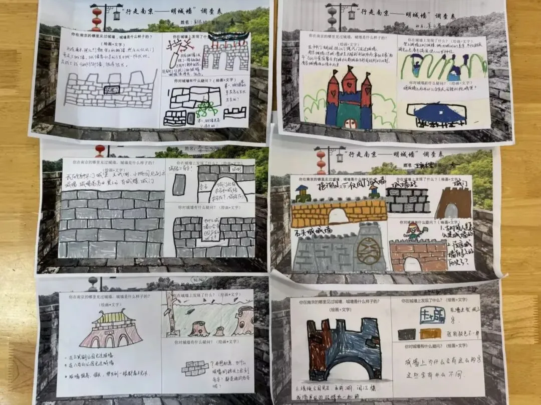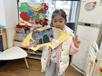 孩子们带来了自己和城墙的合照,在班级里踊跃分享。“我和爸爸妈妈去了仪凤门,它的大门上有好多圆圆的钉子,特别壮观!”忱忱举着照片开心地说。天天立刻接话:“我也去过,城门上面还有尖尖的屋顶呢!”