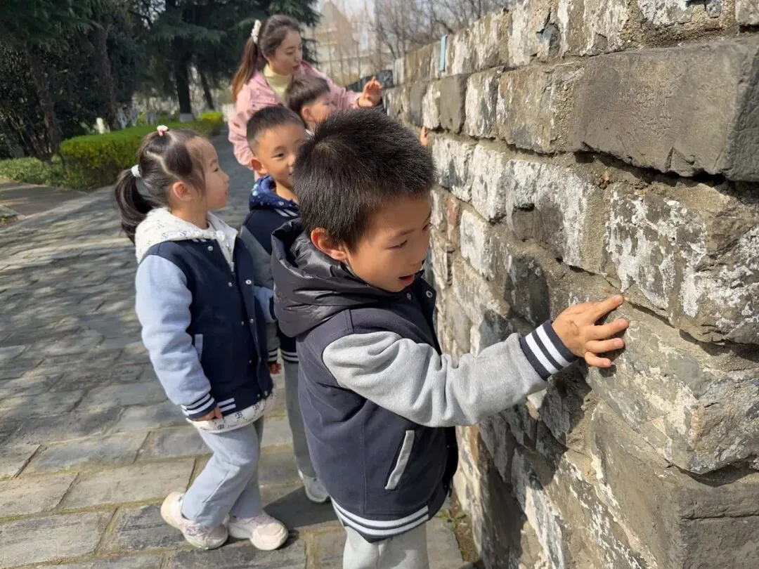 三月的金陵,春风和煦,大二班的孩子们在幼儿园周边的小公园玩耍时,目光被古朴厚重的城墙深深吸引。一块块斑驳的城砖,一座座雄伟的城门,勾起了孩子们满满的好奇心。