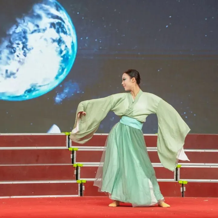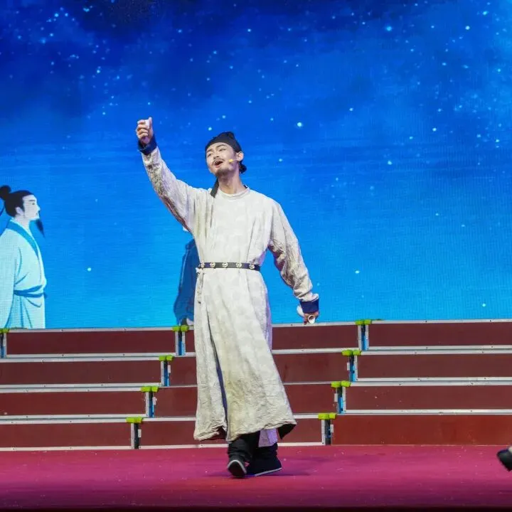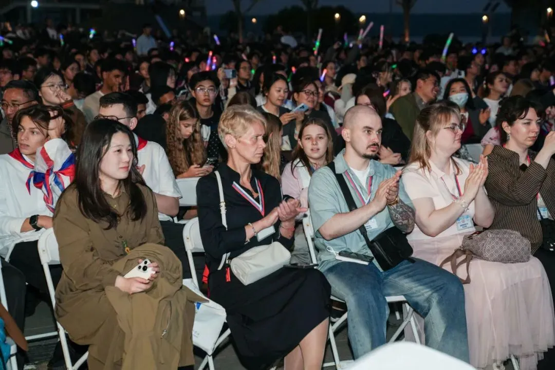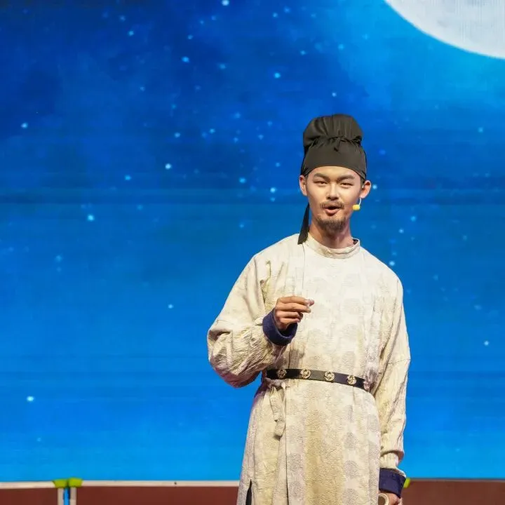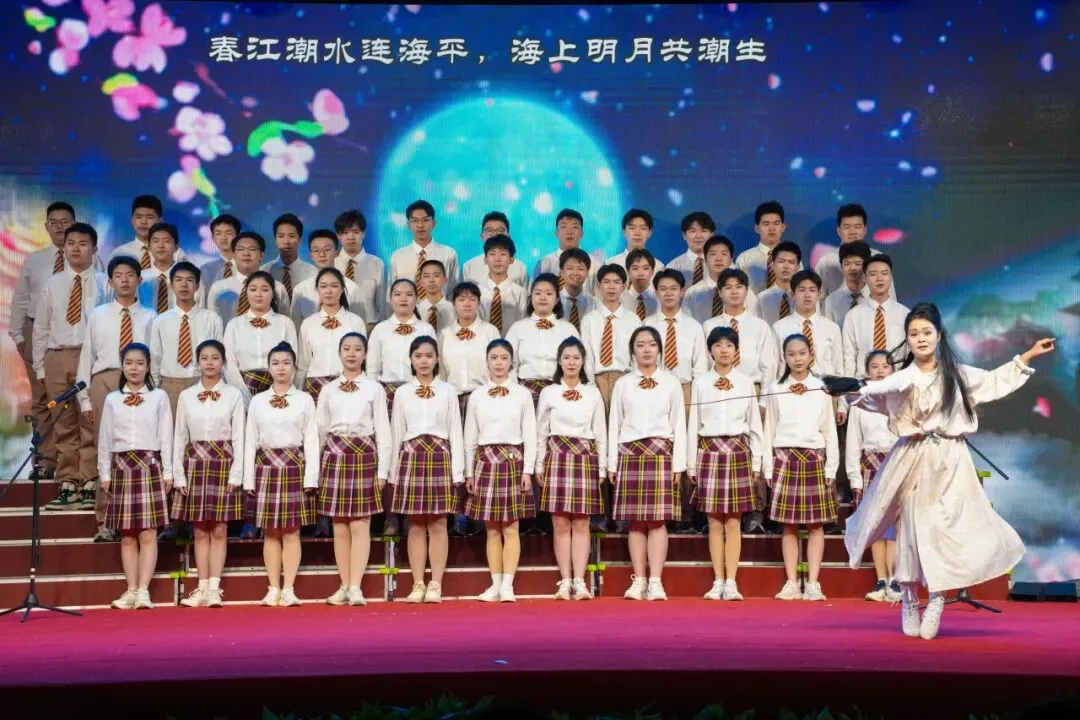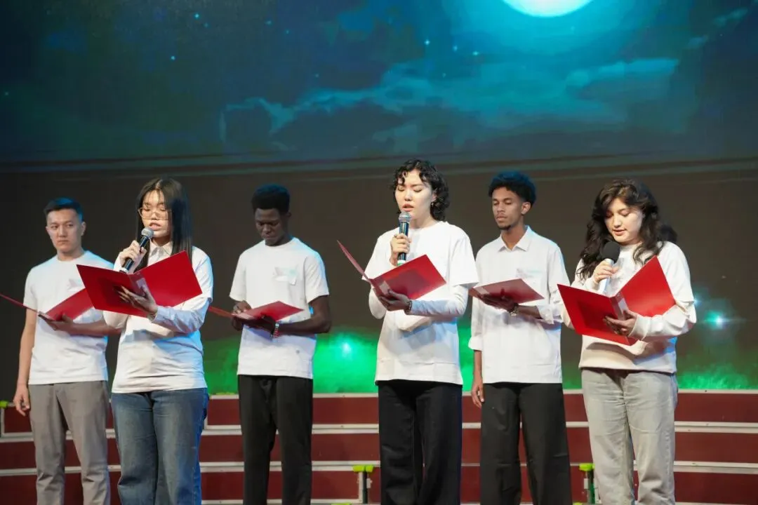 该篇章将现场氛围推向了高潮,在宁留学生代表集体朗诵《共一轮明月》,以异国视角解读月亮意象,彰显了“海上生明月,天涯共此时”的人类共通情感。