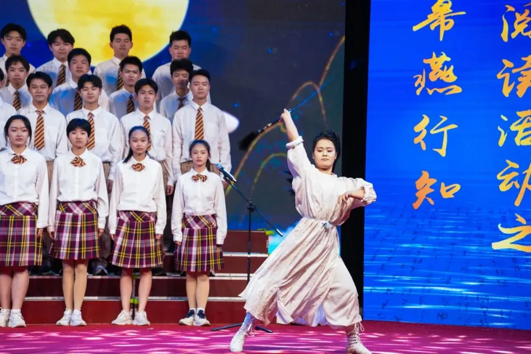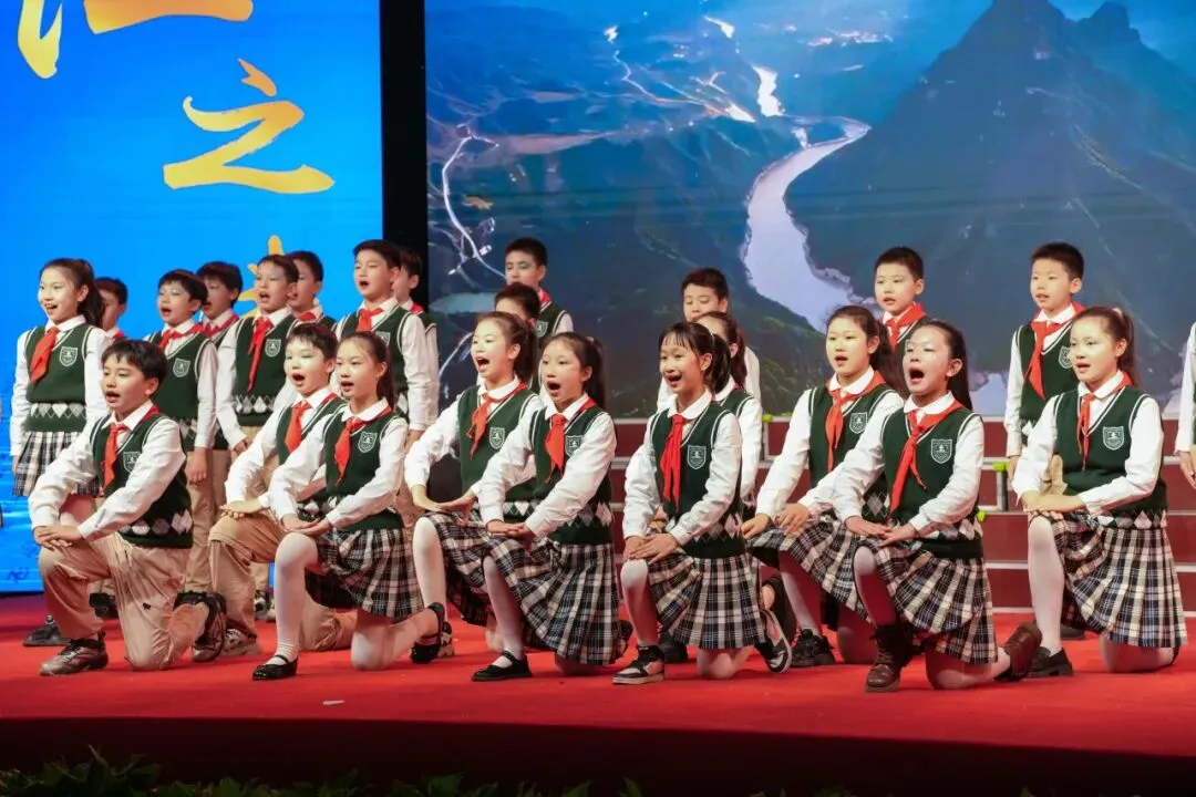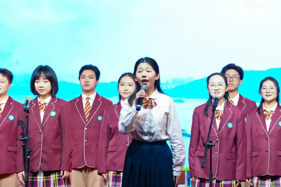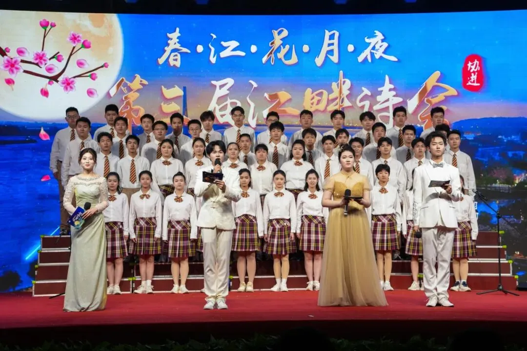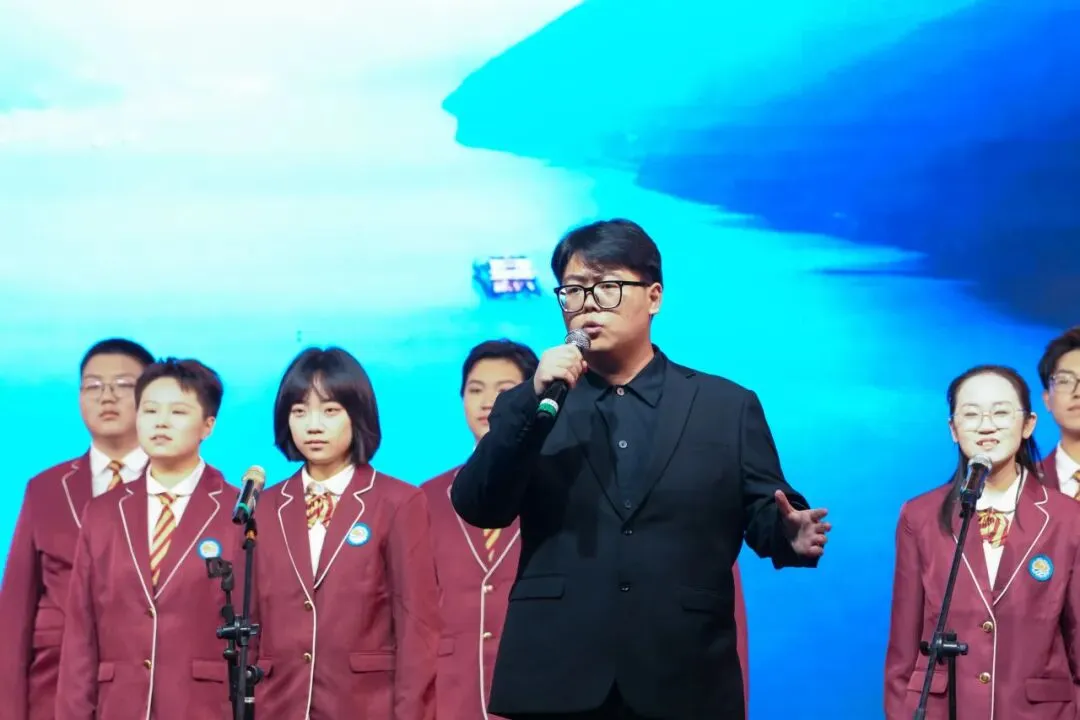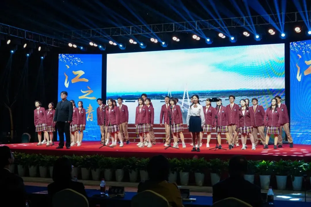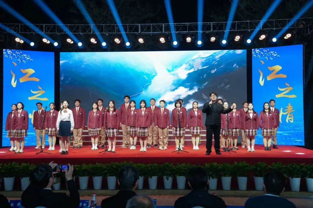 随后,燕子矶中学迈皋桥校区的学生们带来了小合唱《长江之歌》,气势磅礴,诉说了对母亲河长江的眷恋与礼赞,延续了对家国情怀的诗意表达。